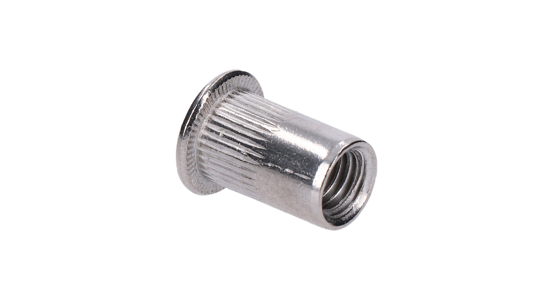 - AISI304 nýtovací matice M8, plochá, rýhovaný dřík, L-15.5mm