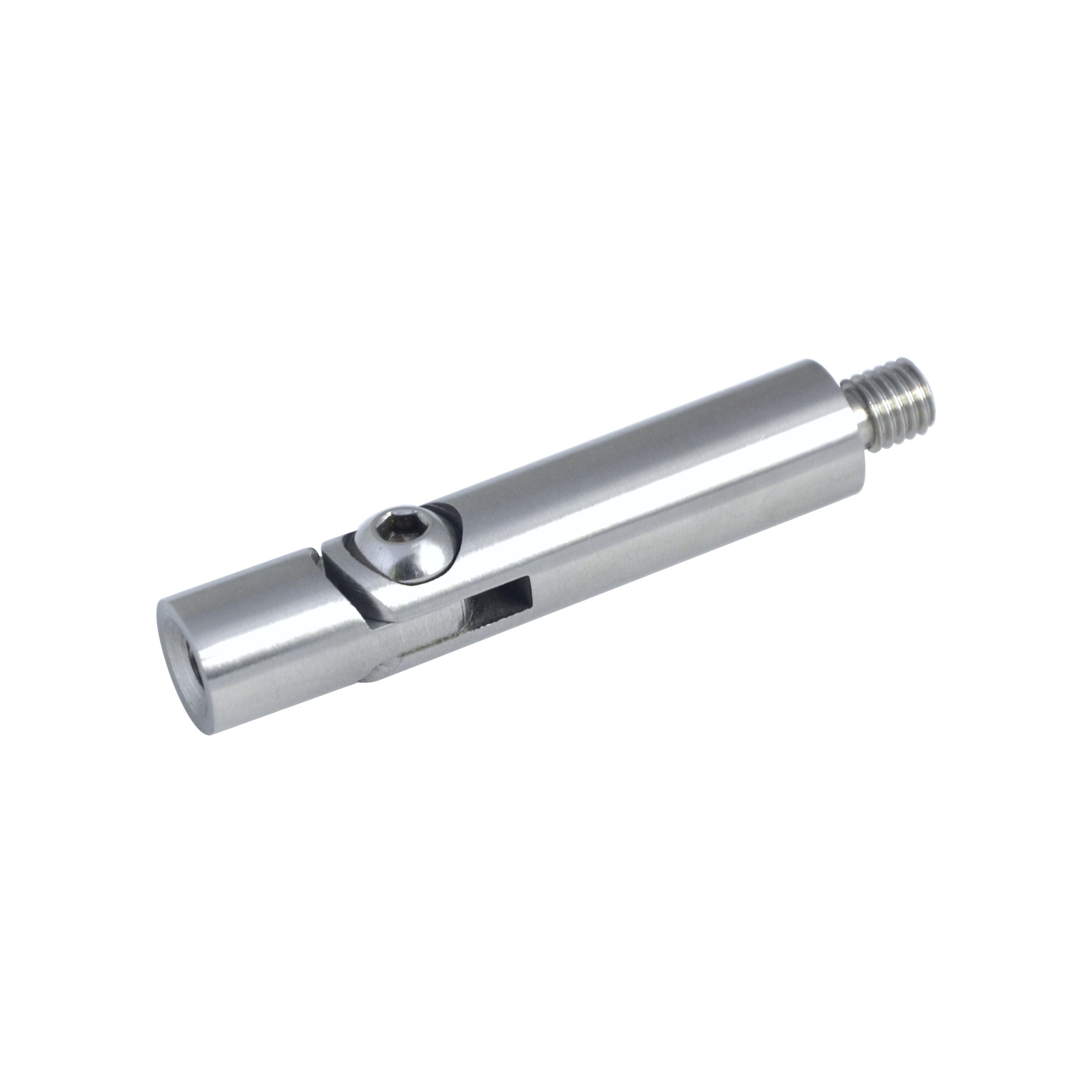 Čep s vnějším a vnitřním závitem je vyroben z kvalitní nerezové oceli typu AISI 304, která zaručuje vysokou odolnost proti korozi a dlouhou životnost. Tento čep má integrovaný kloub, což jej činí nastavitelným a ideálním pro uchycení madla ke sloupku, zejména na místech s nerovným sklonem, jako jsou schodiště. Pro správnou instalaci je nutné použít také horní plochu/plotnu. Spolu s touto plotnou vytváří čep pevný a estetický držák madla, vhodný pro použití v interiéru i exteriéru. Díky nerezové oceli AISI 304 je čep odolný vůči běžným povětrnostním vlivům a zajišťuje spolehlivé spojení.