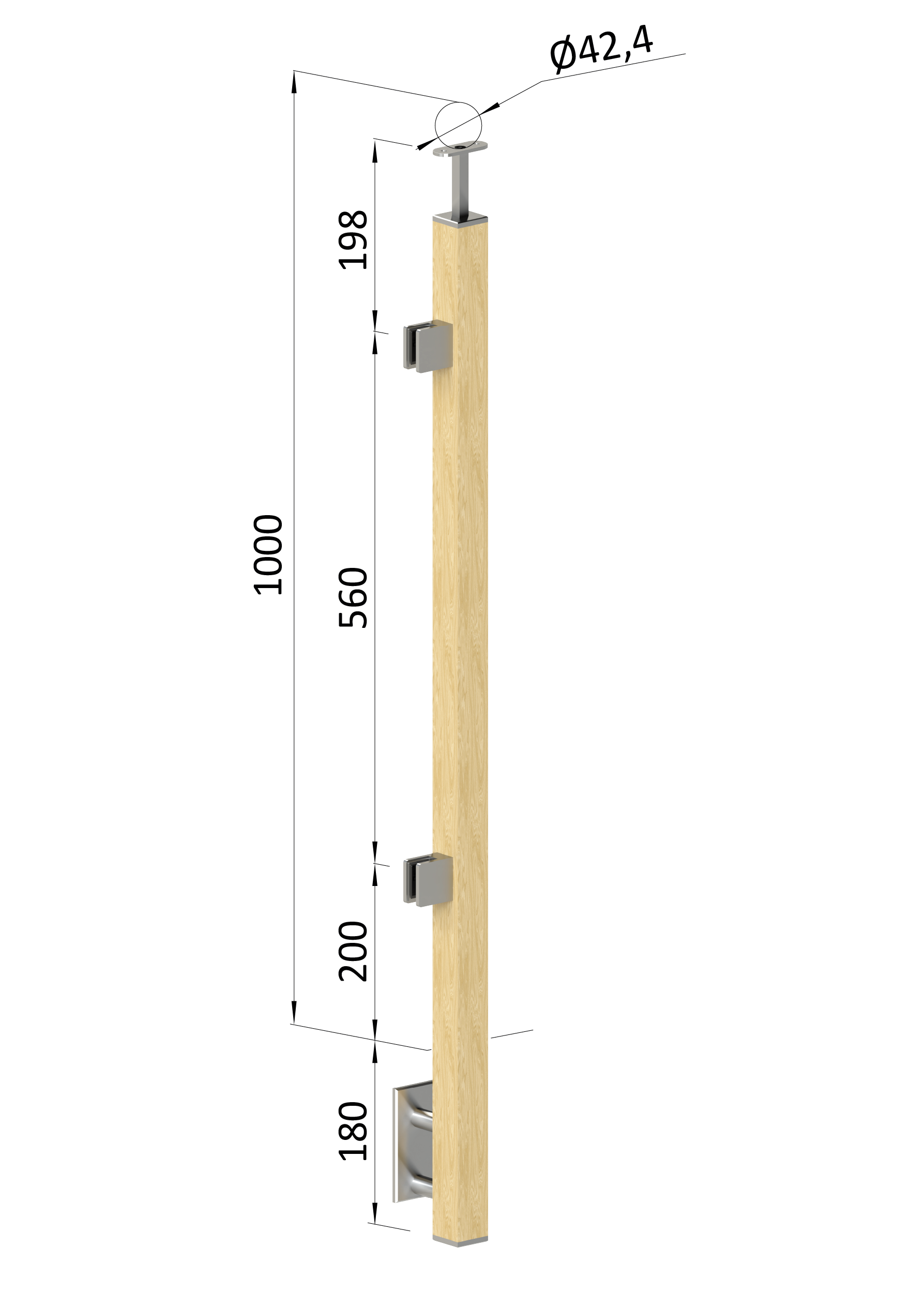 - Dřevěný sloup, boční kotvení, výplň: sklo, koncový, levý