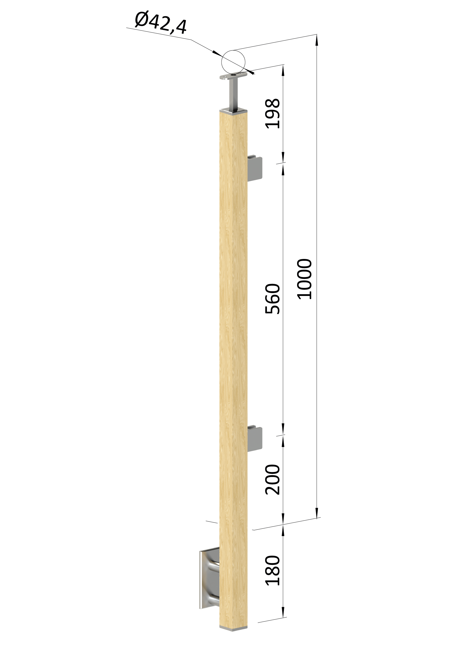 - Dřevěný sloup, boční kotvení, výplň: sklo, koncový, pravý