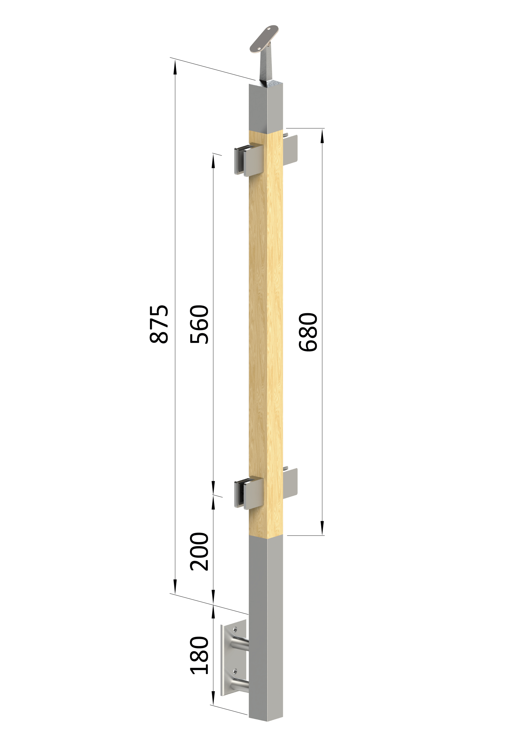 Dřevěný sloup, boční kotvení, výplň: sklo, průchozí
