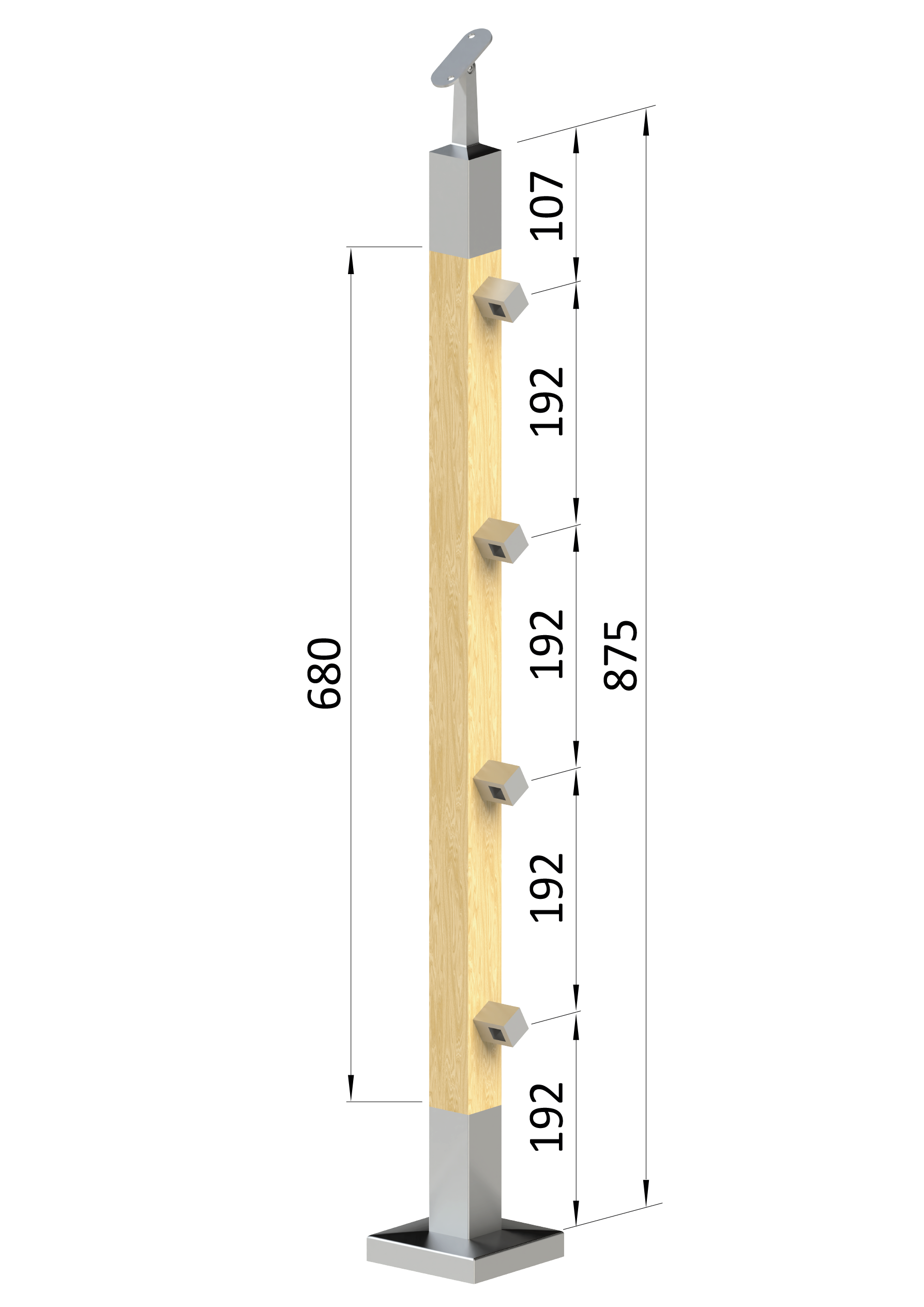 - Dřevěný sloup, vrchní kotvení, průchozí, 4řadový