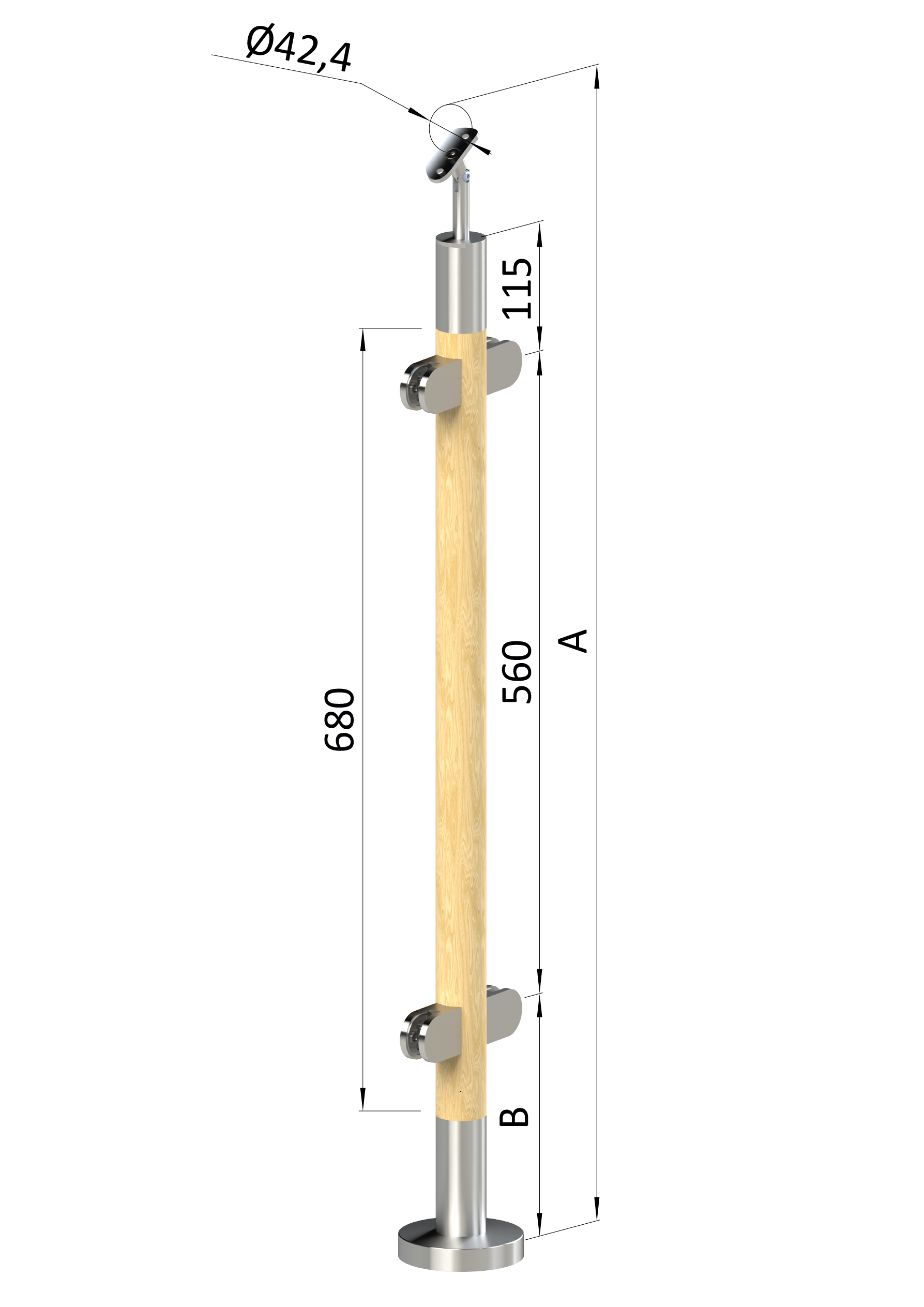 - Dřevěný sloup, vrchní kotvení, výplň: sklo, průchozí