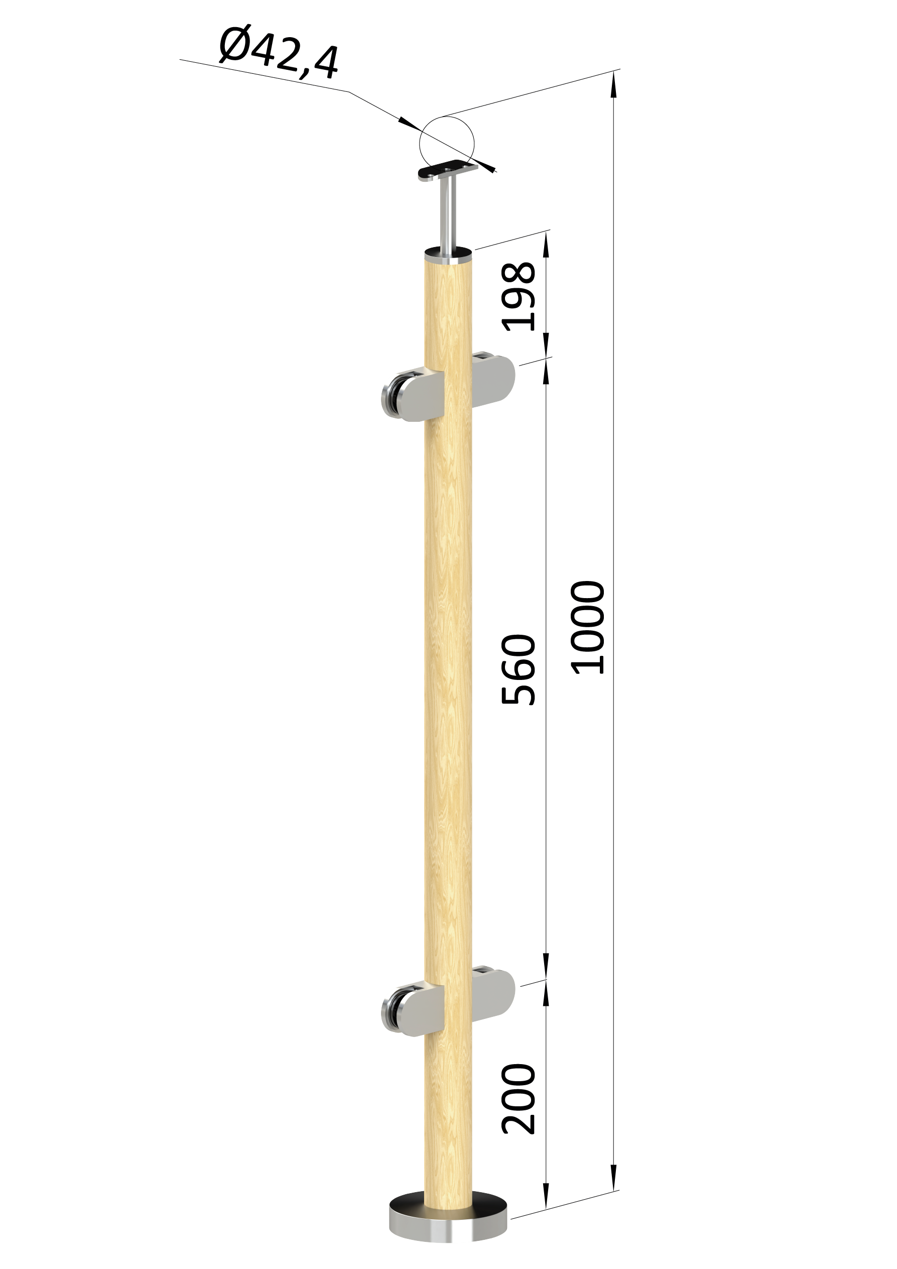 Dřevěný sloup, vrchní kotvení, výplň: sklo, průchozí