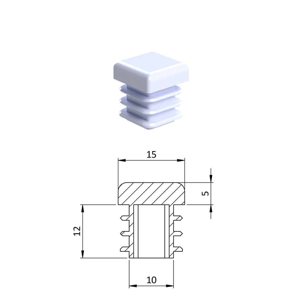 Krytka plastová 15 x 15 mm, bíláSkladem1,55 Kč/ KS1,29 Kč bez DPH