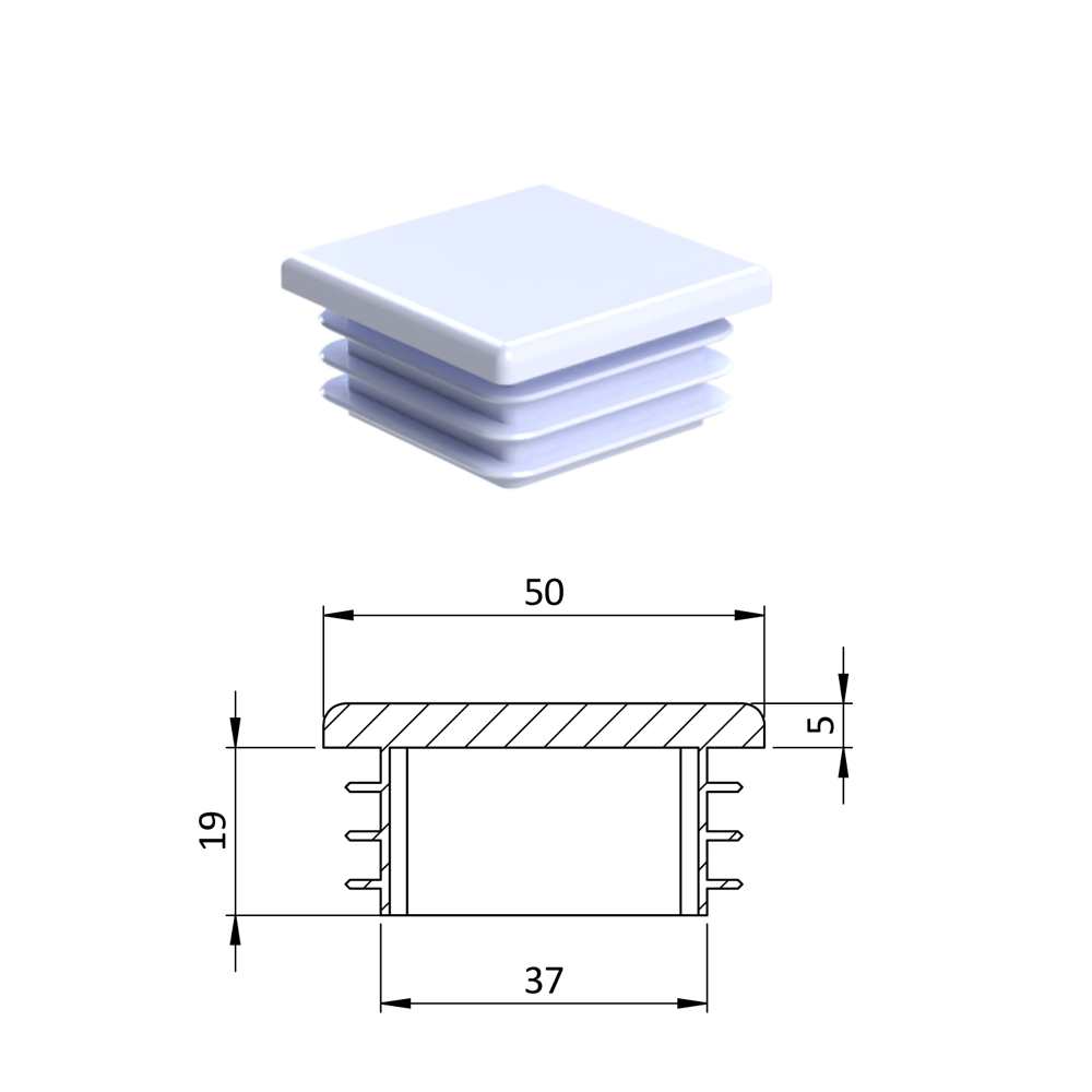 - Krytka plastová 50 x 50 x 3 - 5 mm, bílá