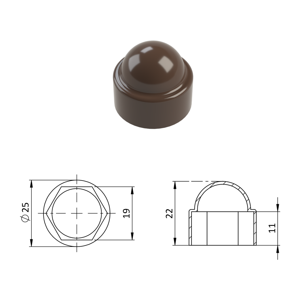 Krytka plastová na matice a šrouby M12, hnědáSkladem1,79 Kč/ KS1,48 Kč bez DPH