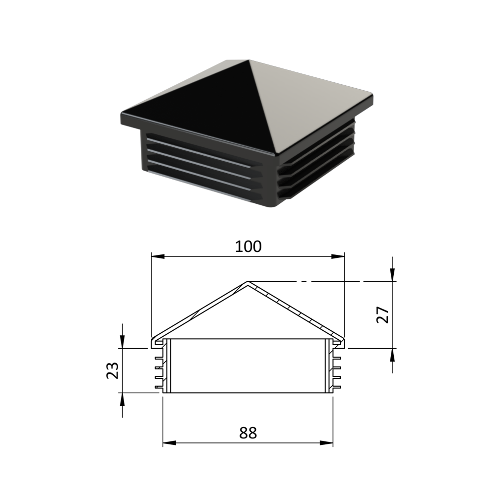 - Krytka plastová se stříškou 100 x 100 mm, černá