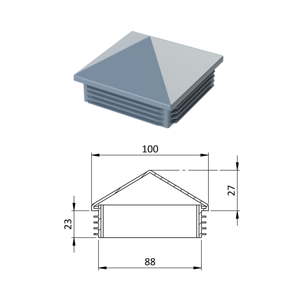 - Krytka plastová se stříškou 100 x 100 mm, šedá