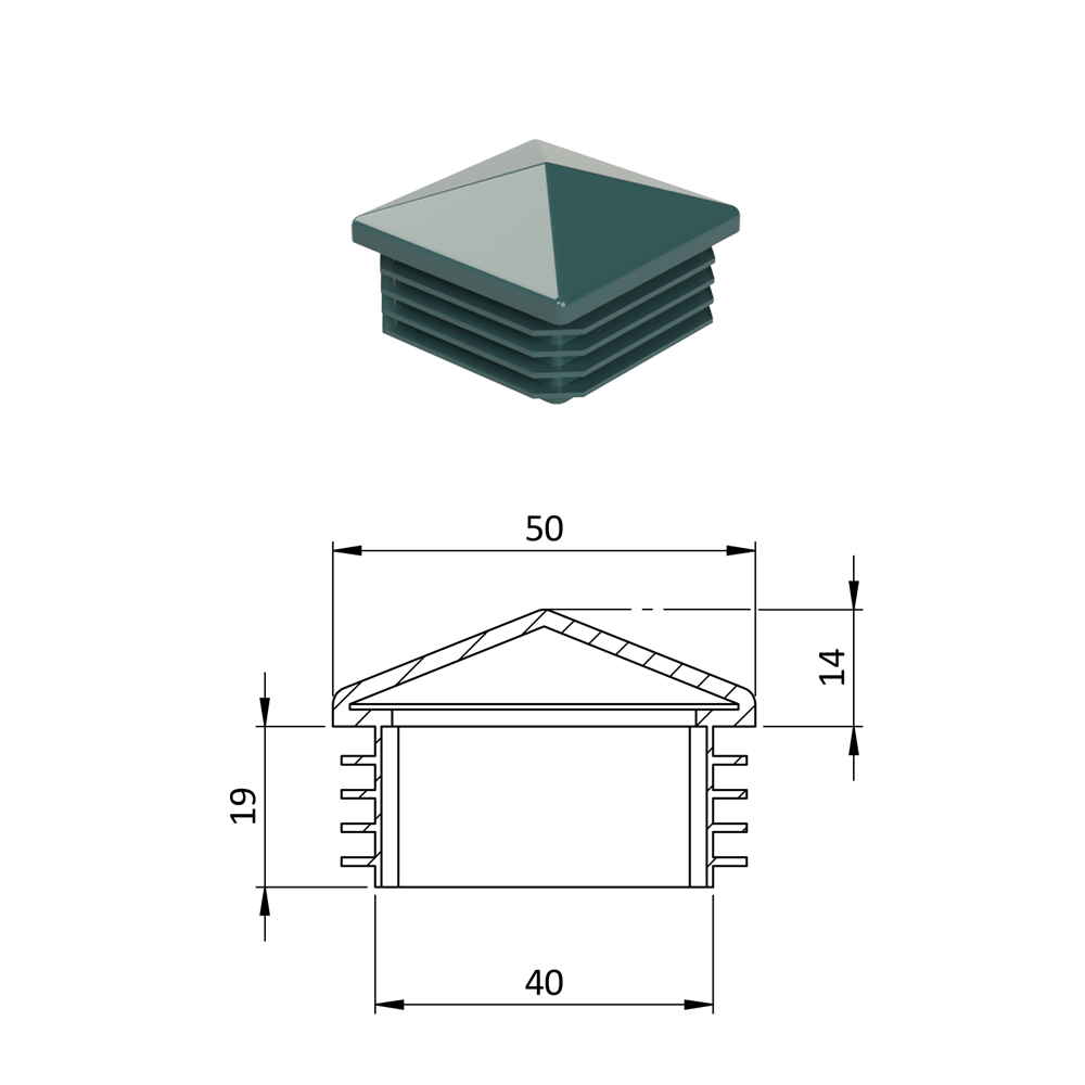 - Krytka plastová se stříškou 50 x 50 mm, zelená