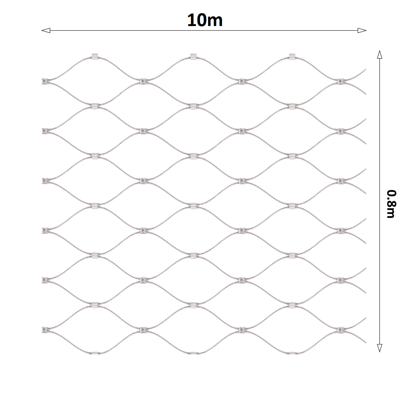 Nerezová lanková síť, 0.8mx10m (š×d), oko 60×104mm, tloušťka lanka 2mm, AISI316 (V nerozloženém stavu má síť délku 11.92m)