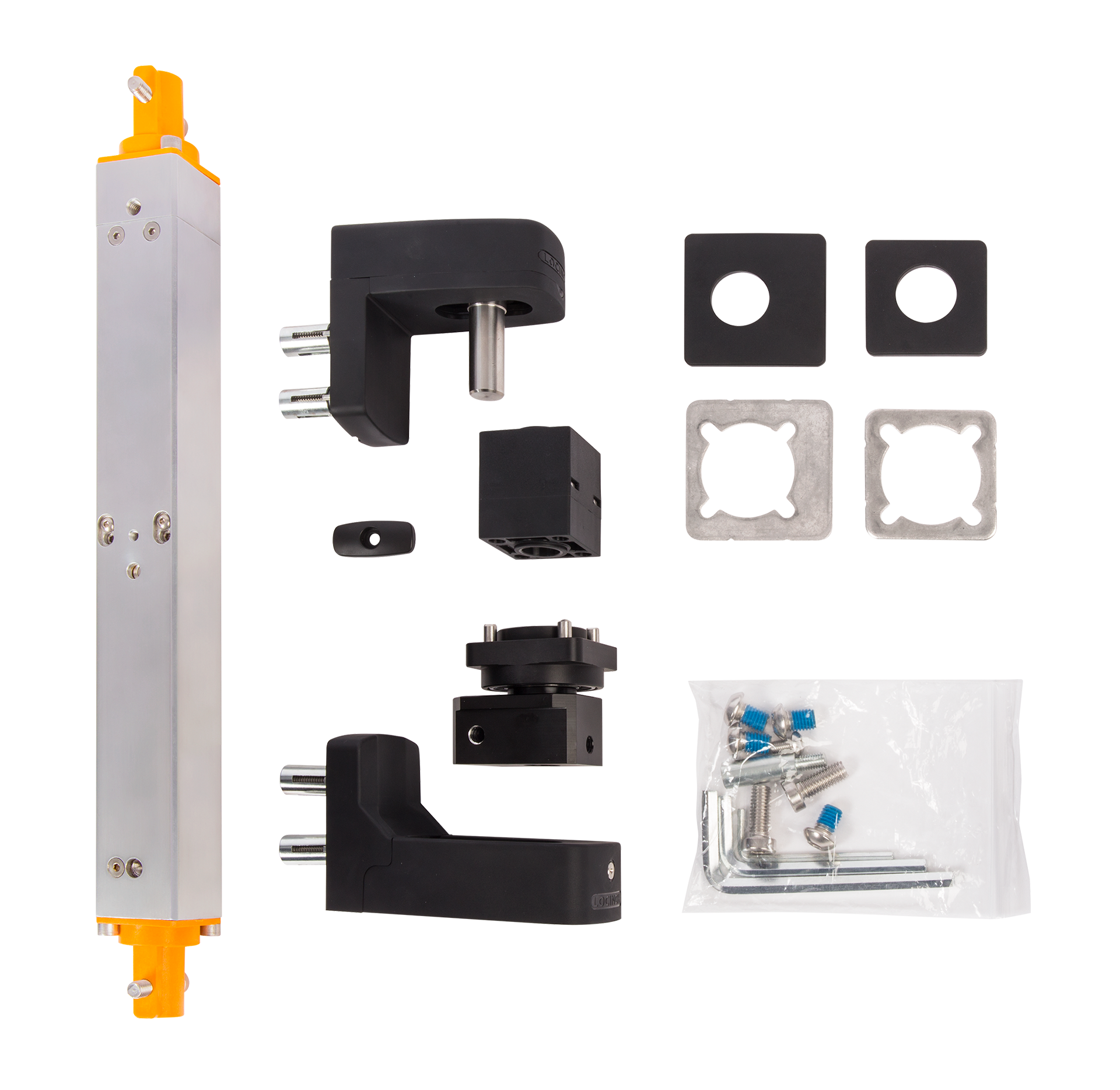 Volitelné příslušenství: zavírač INTERIO je určen k instalaci do sloupku 50x50mm nebo 60x60mm. Adaptér pro montáž na stěnu resp. na zem není součástí balení. Adaptér je volitelné příslušenství.