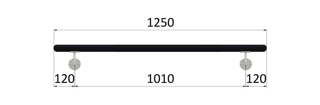 - Madlo dřevěné (1250mm), materiál: buk, broušený povrch s černým nátěrem RAL 9005, set: 2 ks úchyt, madlo s ukončením