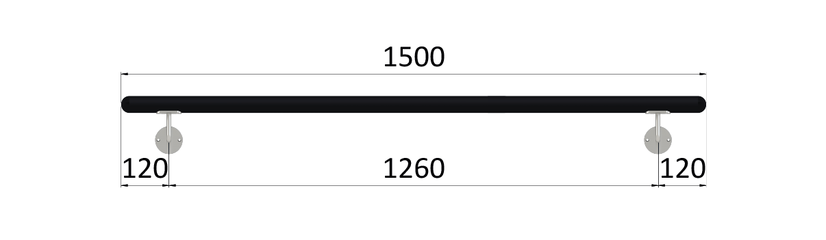 - Madlo dřevěné (1500mm), materiál: buk, broušený povrch s černým nátěrem RAL 9005, set: 2 ks úchyt, madlo s ukončením