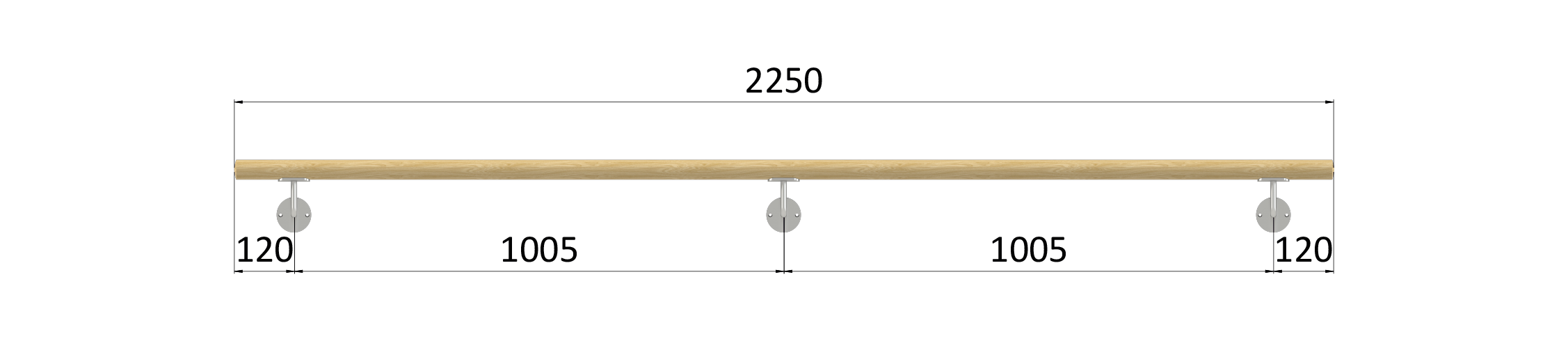 Madlo dřevěné (2250 mm), materiál: buk, broušený povrch s nátěrem BORI (bezbarvý), set: 3ks úchyt, madlo s ukončením