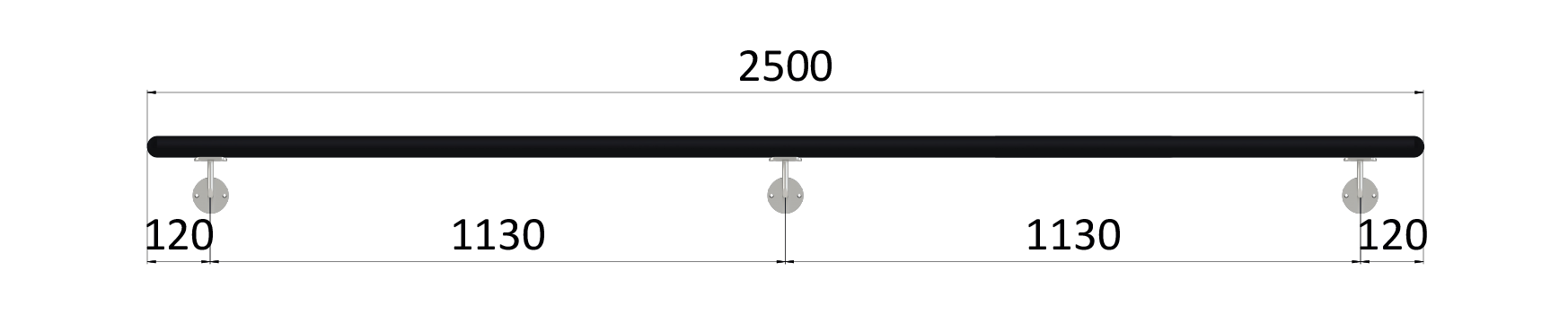 - Madlo dřevěné (2500mm), materiál: buk, broušený povrch s černým nátěrem RAL 9005, set: 3 ks úchyt, madlo s ukončením