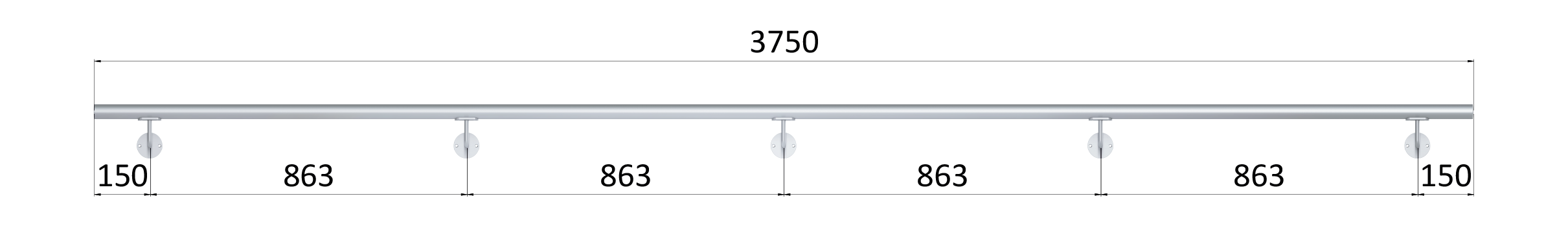 Madlo 3750 mm (set: 5ks úchyt, madlo ø 42,4 mm s ukončením), broušená nerez K320 / AISI304