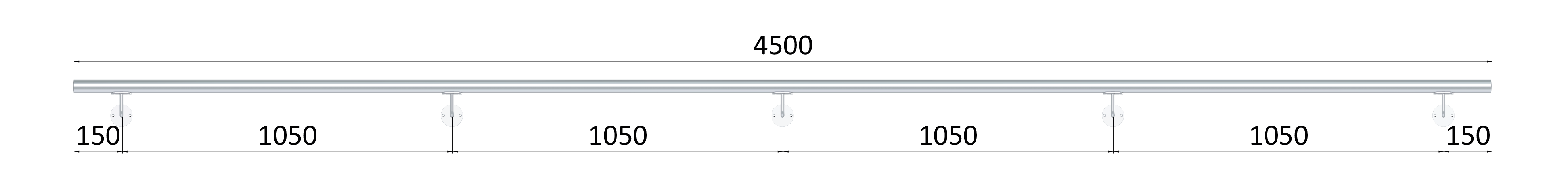 Madlo 4500 mm / leštěná nerez / AISI304, set: 5ks úchyt, madlo ø 42,4 mm s ukončením