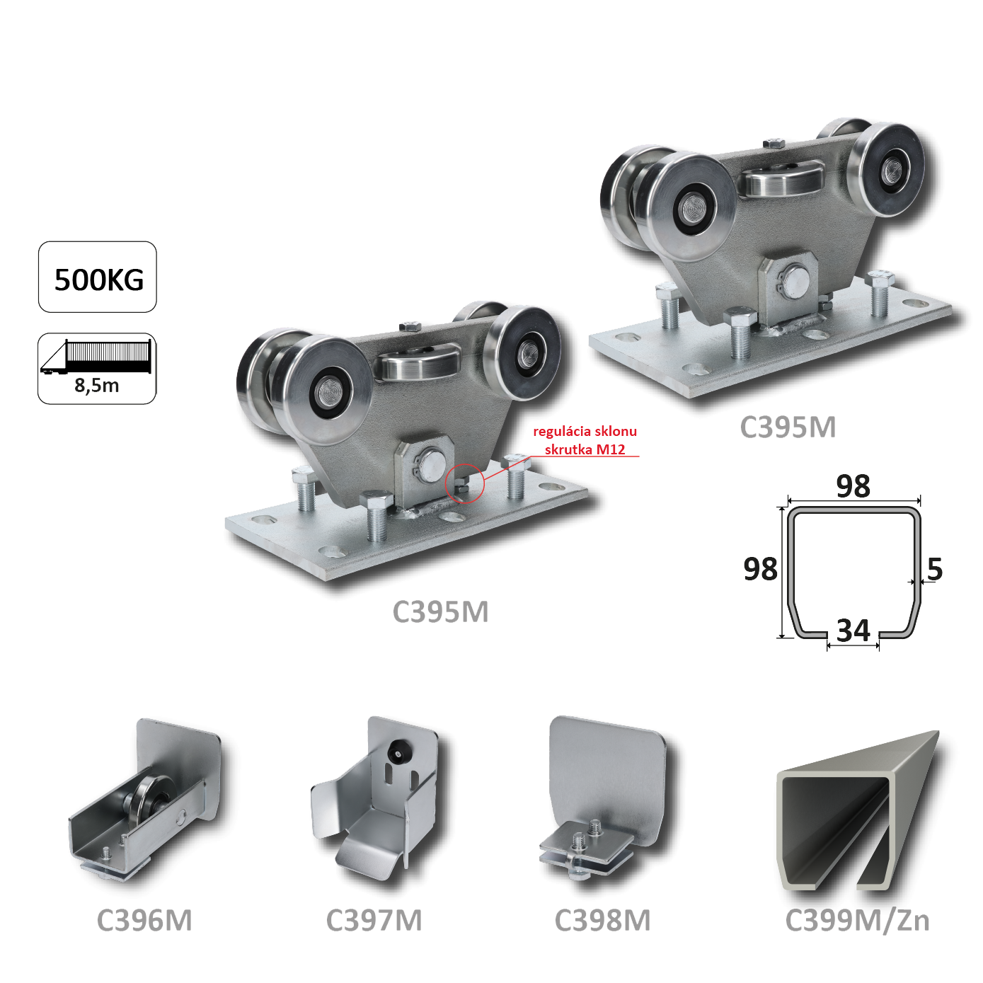 MEDIO-Klasik samonosný systém 98 x 98 x 5 mm pro posuvné brány do 500 kg/8,5 m průjezd, běžný provoz
