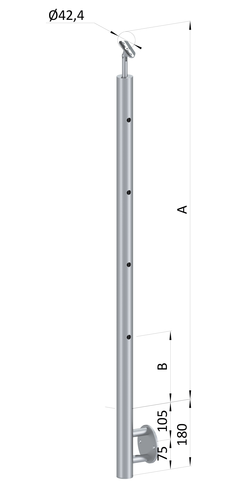 - Nerezový sloup, boční kotvení, 4děrový koncový, pravý Priemer výplne