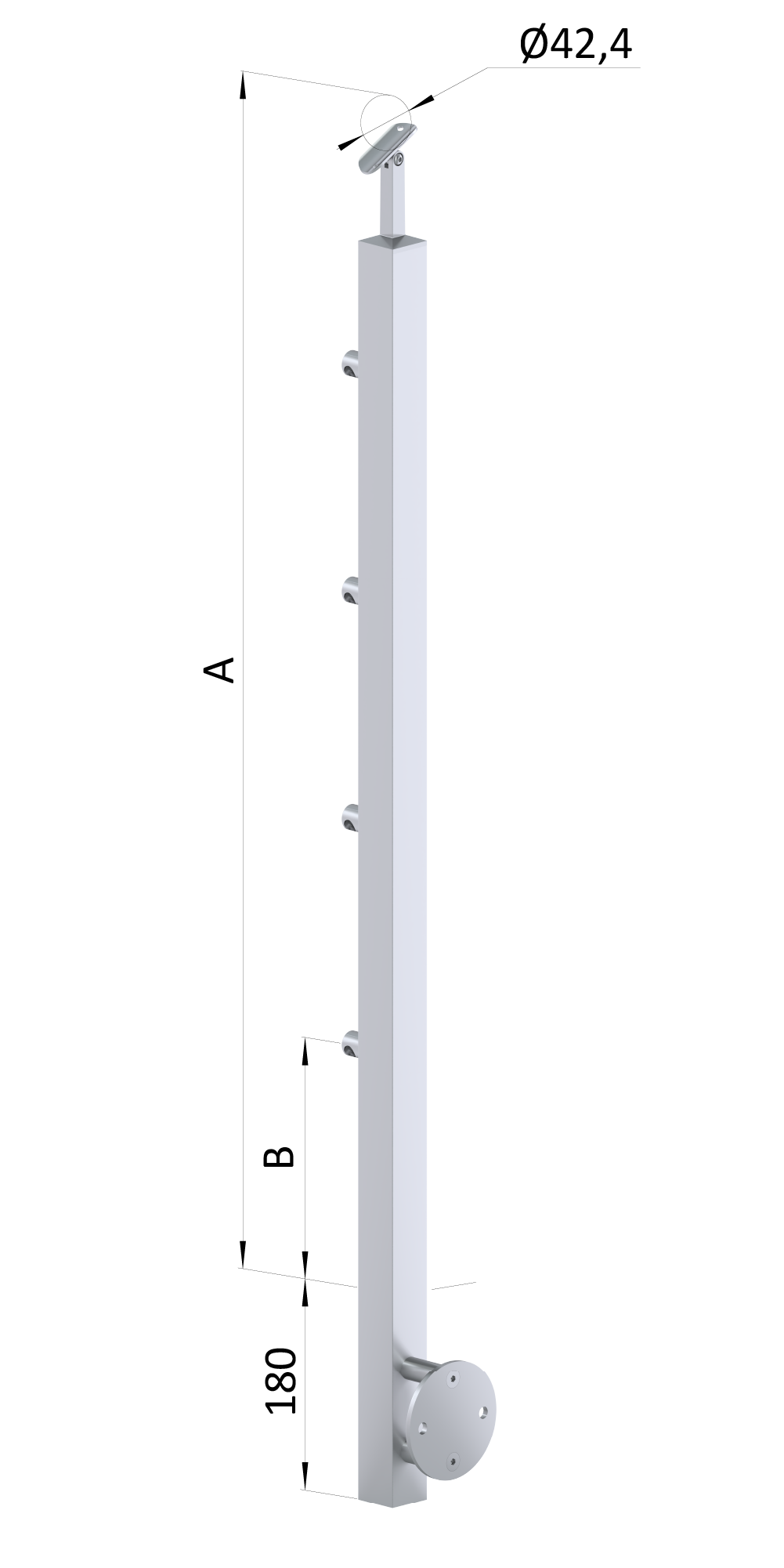 Nerezový sloup, boční kotvení, 4řadový průchozí, vnější Rozmer B