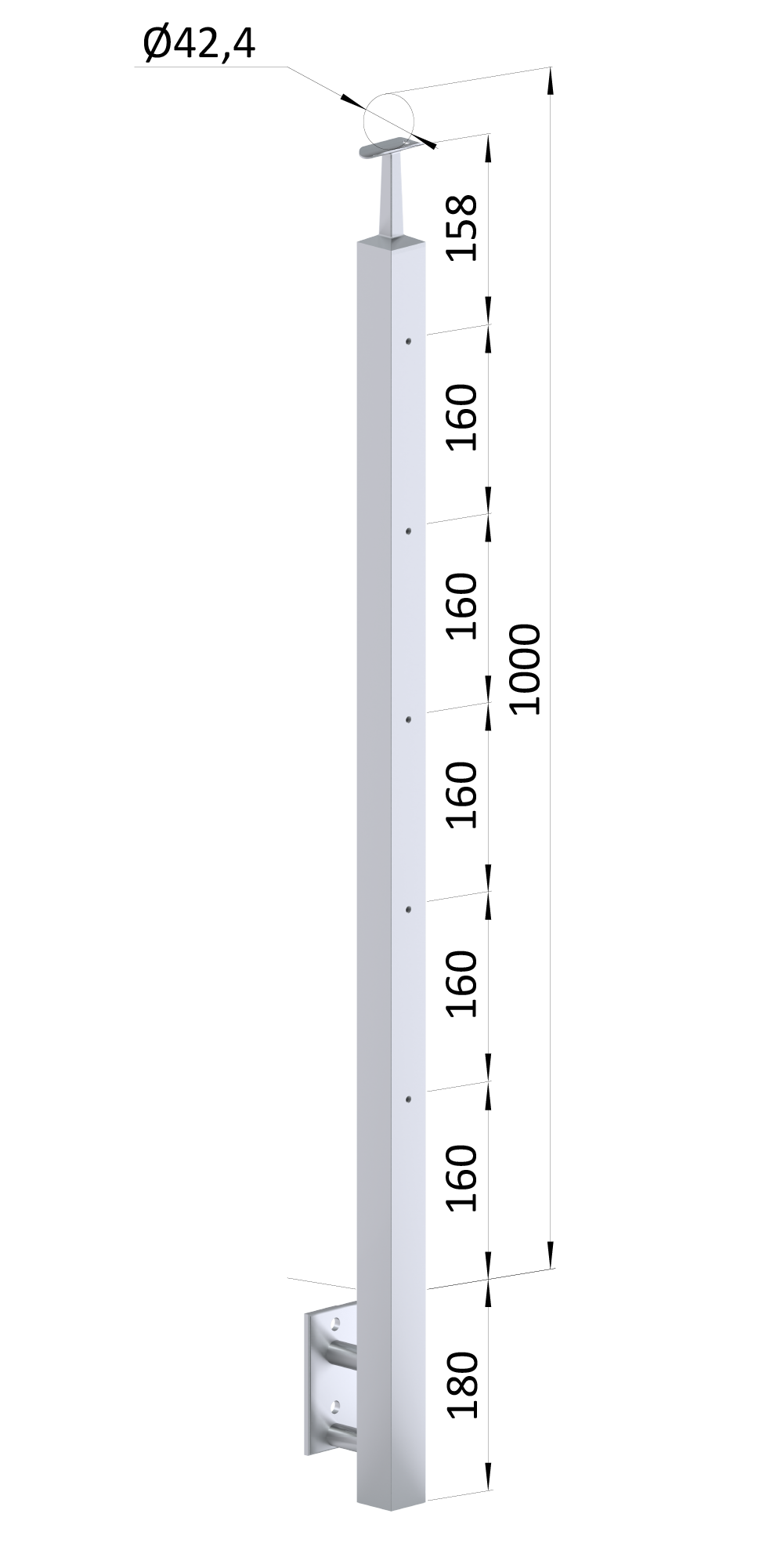 - Nerezový sloup, boční kotvení, 5řadový M6, vnější