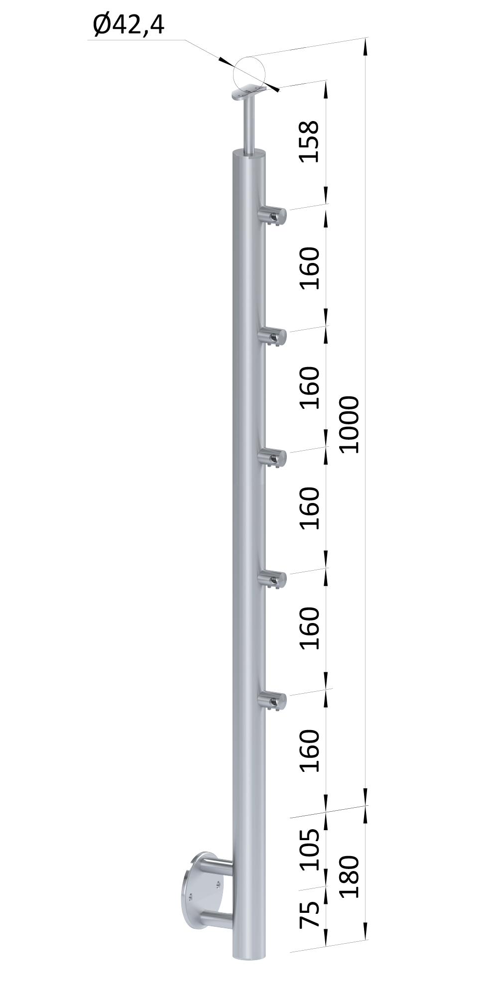 - Nerezový sloup, boční kotvení, 5řadový průchozí