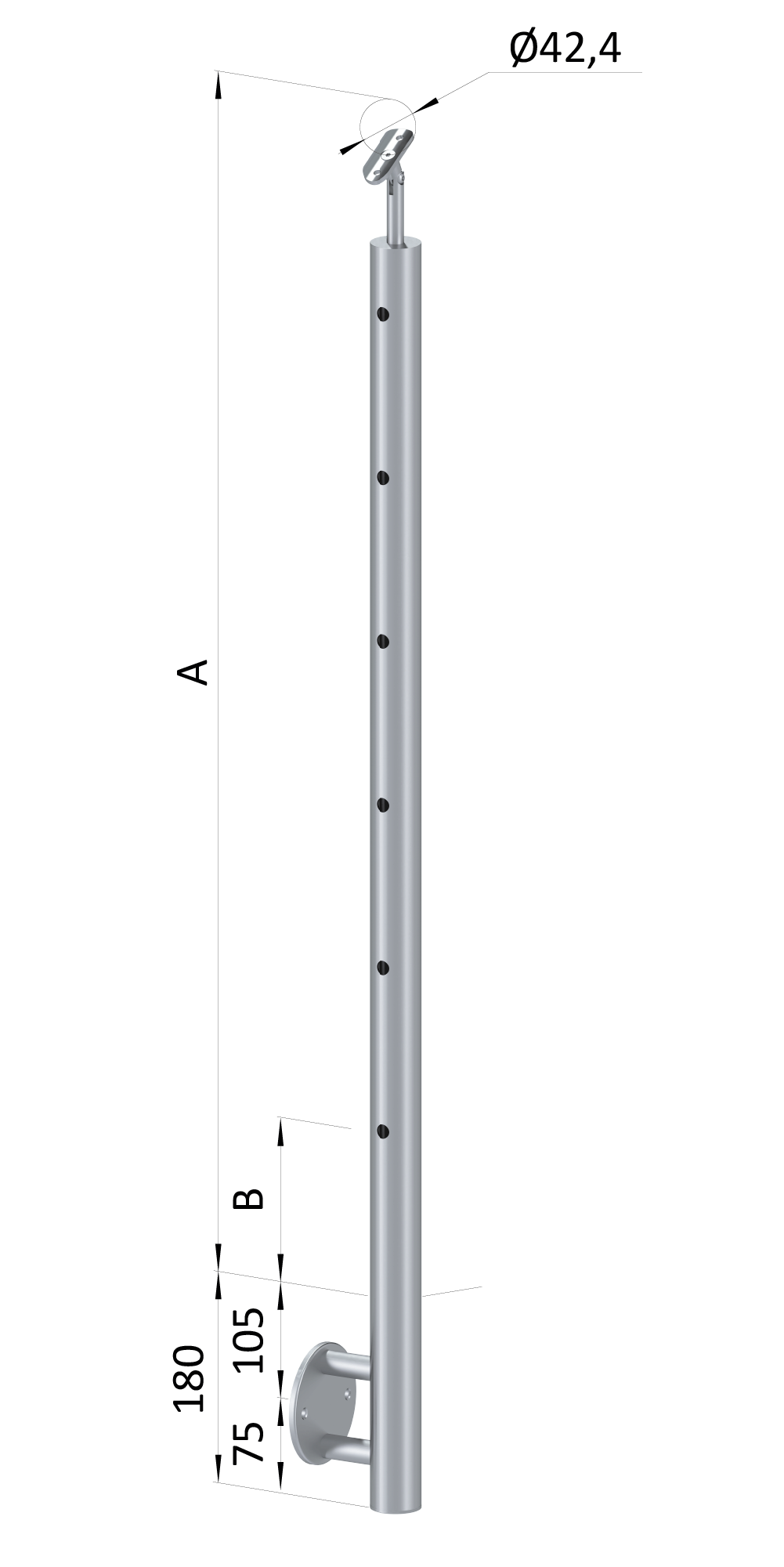 Nerezový sloup, boční kotvení, 6děrový koncový, levý Uhol u°Není skladem1 527,79 Kč/ KS1 262,63 Kč bez DPH
