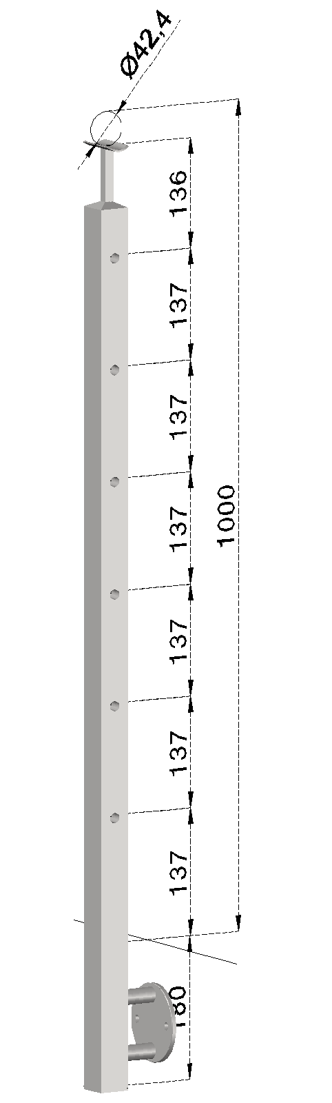 - Nerezový sloup, boční kotvení, 6děrový průchozí Priemer výplne 12