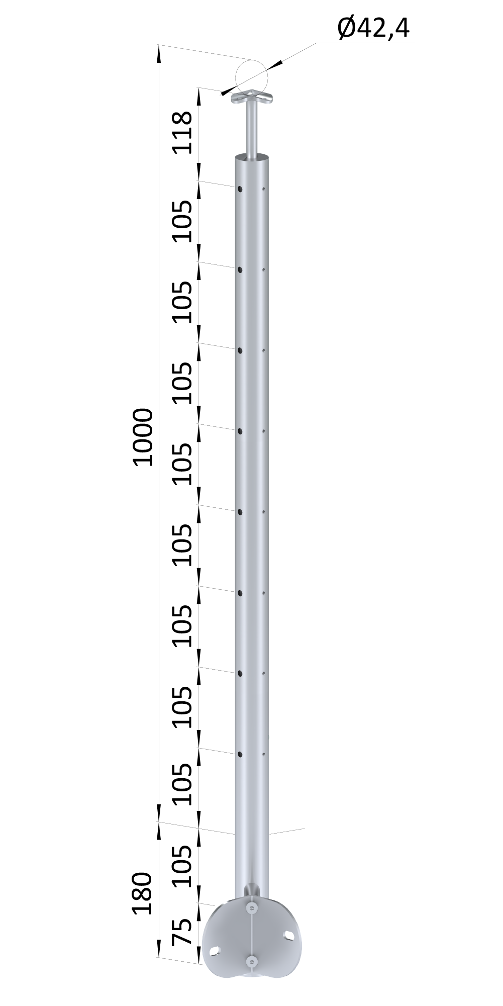 - Nerezový sloup, boční kotvení, 8děrový na lanko, rohový: 90° Priemer otvoru 7 mm