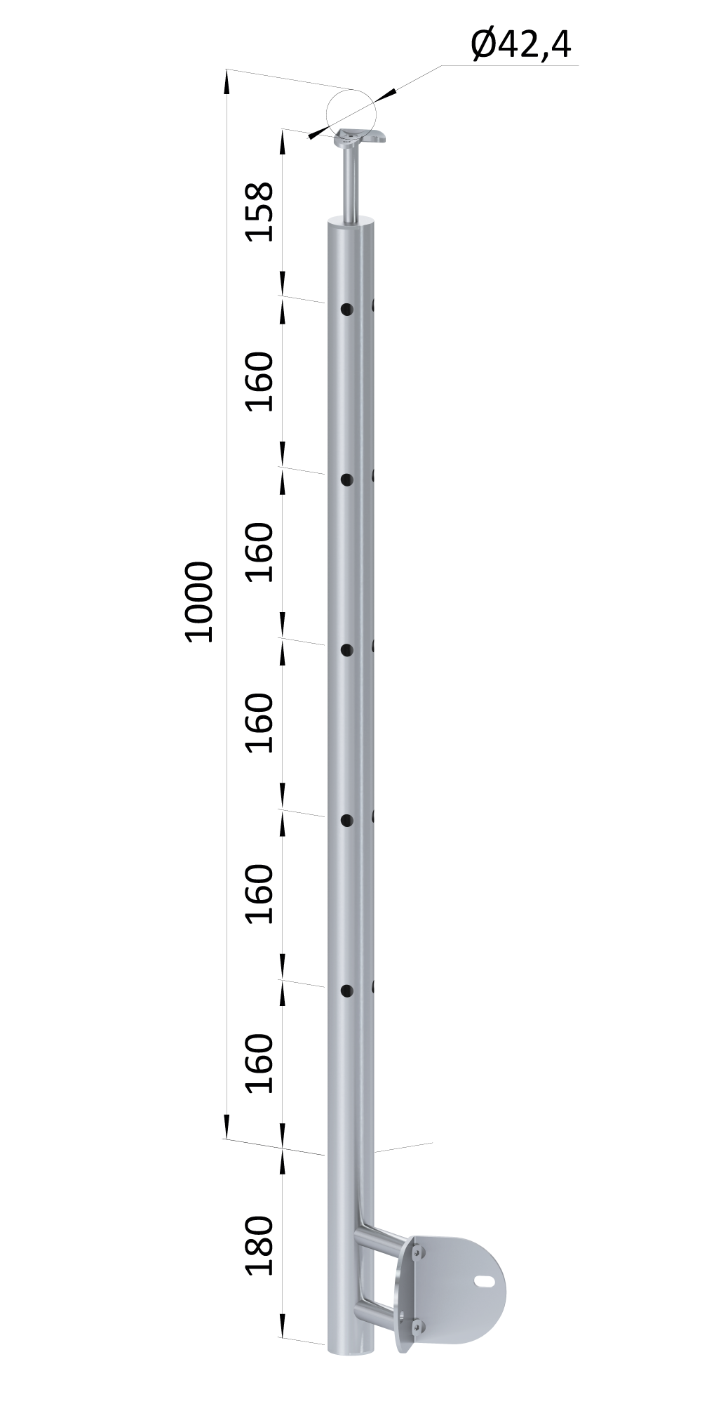 - Nerezový sloup, boční kotvení rohové, 5děrový, rohový: 90° Priemer výplne 12