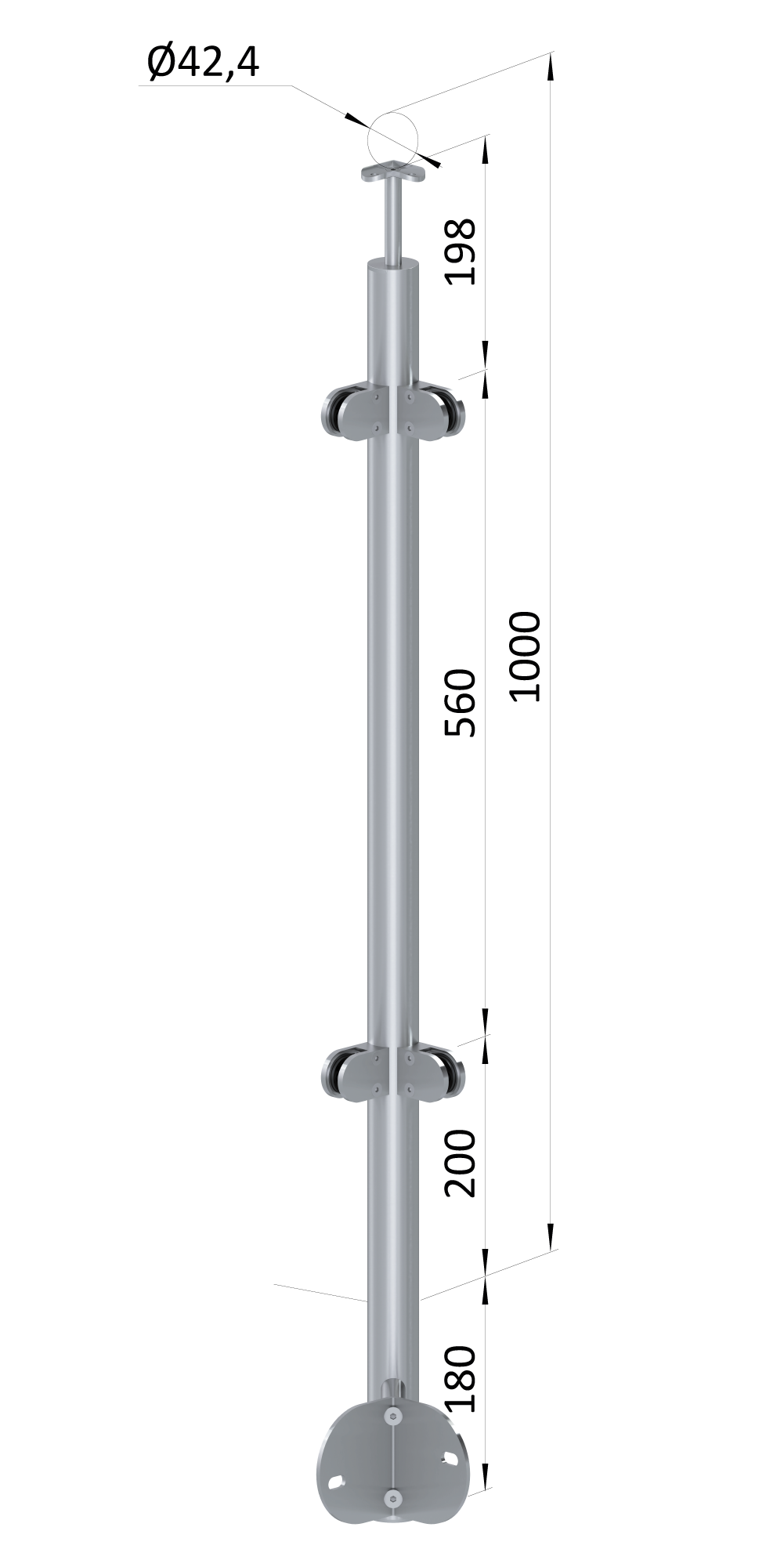 - Nerezový sloup, boční kotvení rohové, výplň: sklo