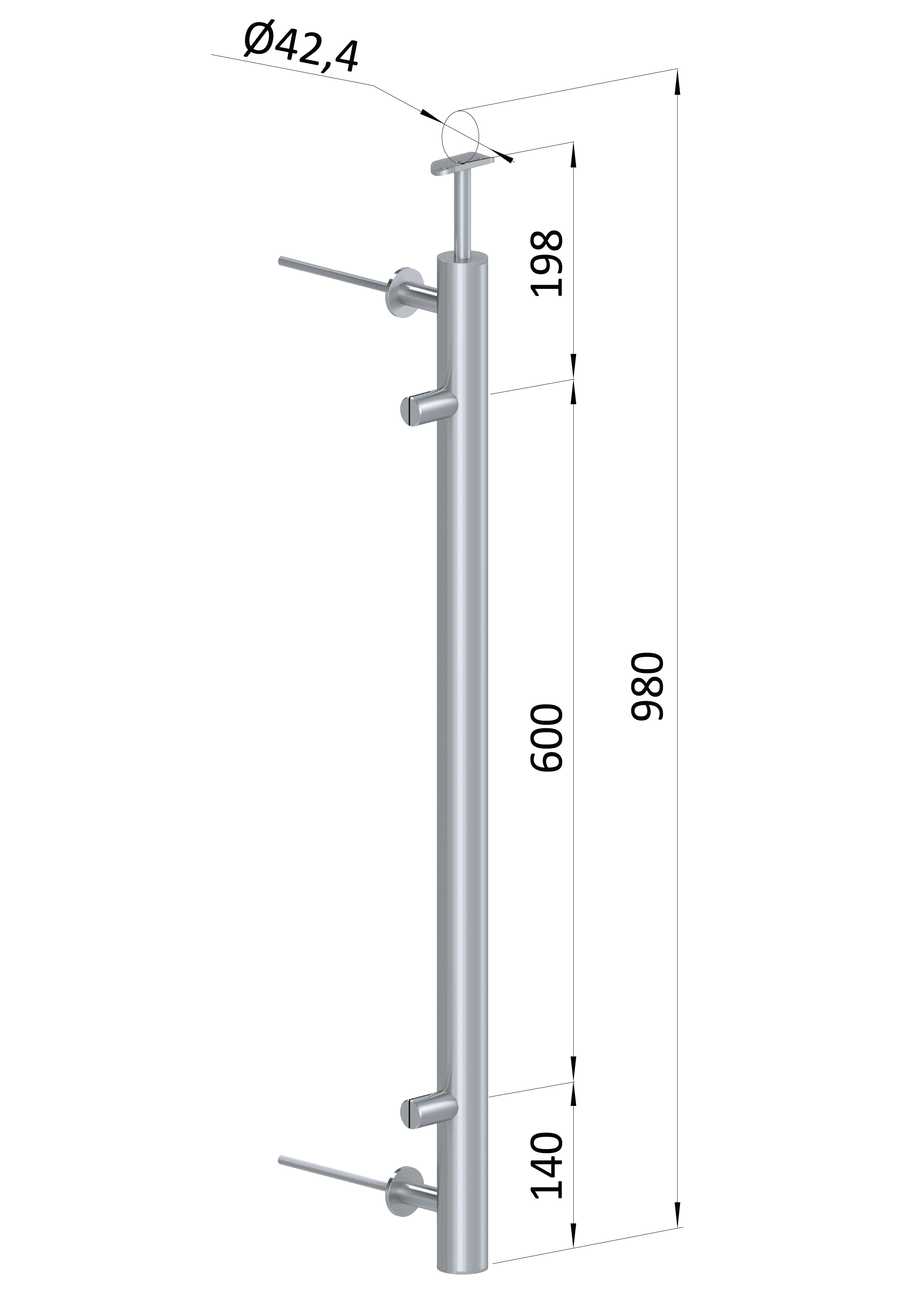 - Nerezový sloup, boční kotvení, výplň: plech, levý