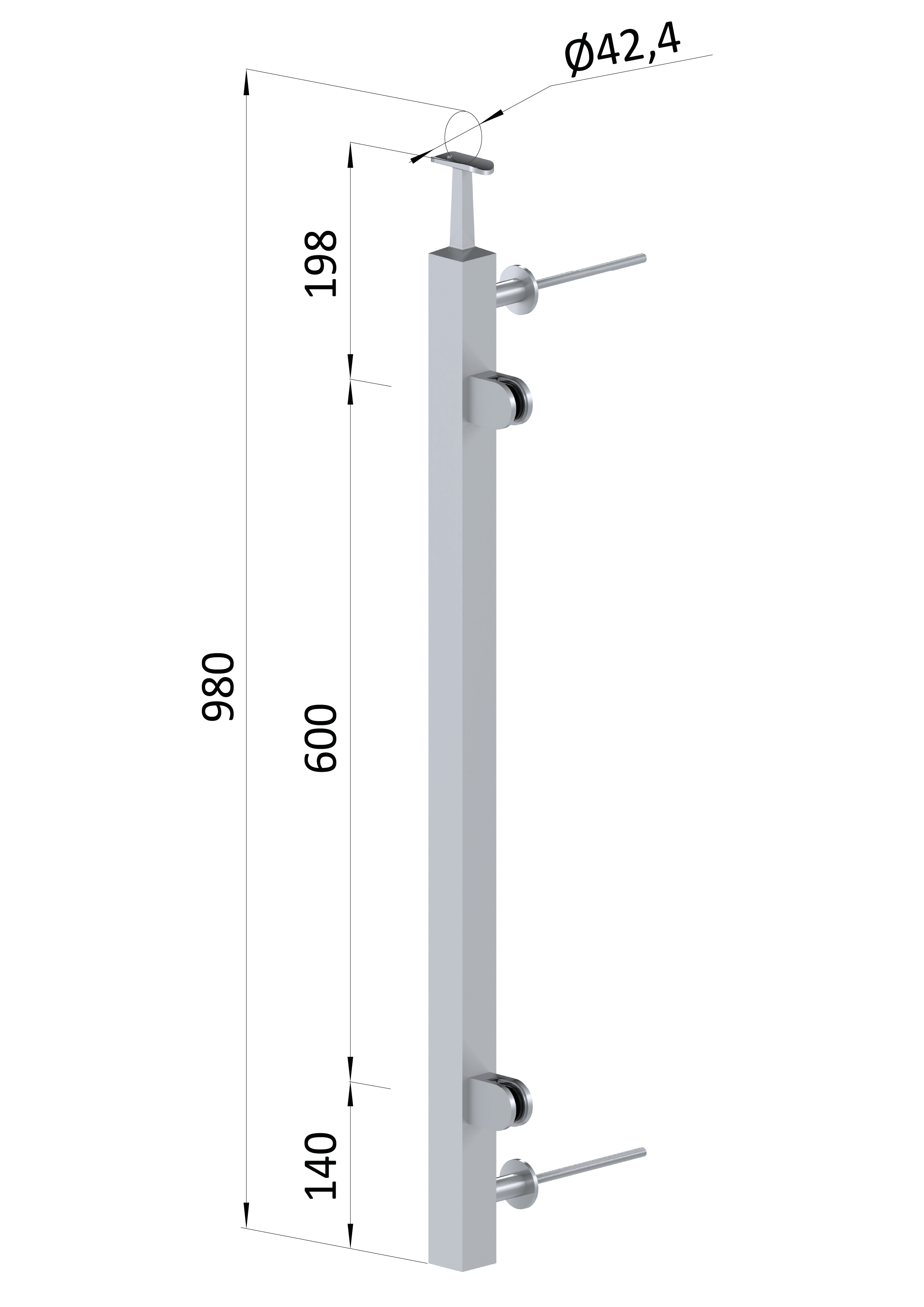 - Nerezový sloup fr. balkon, boční kotvení, výplň: sklo, pravý