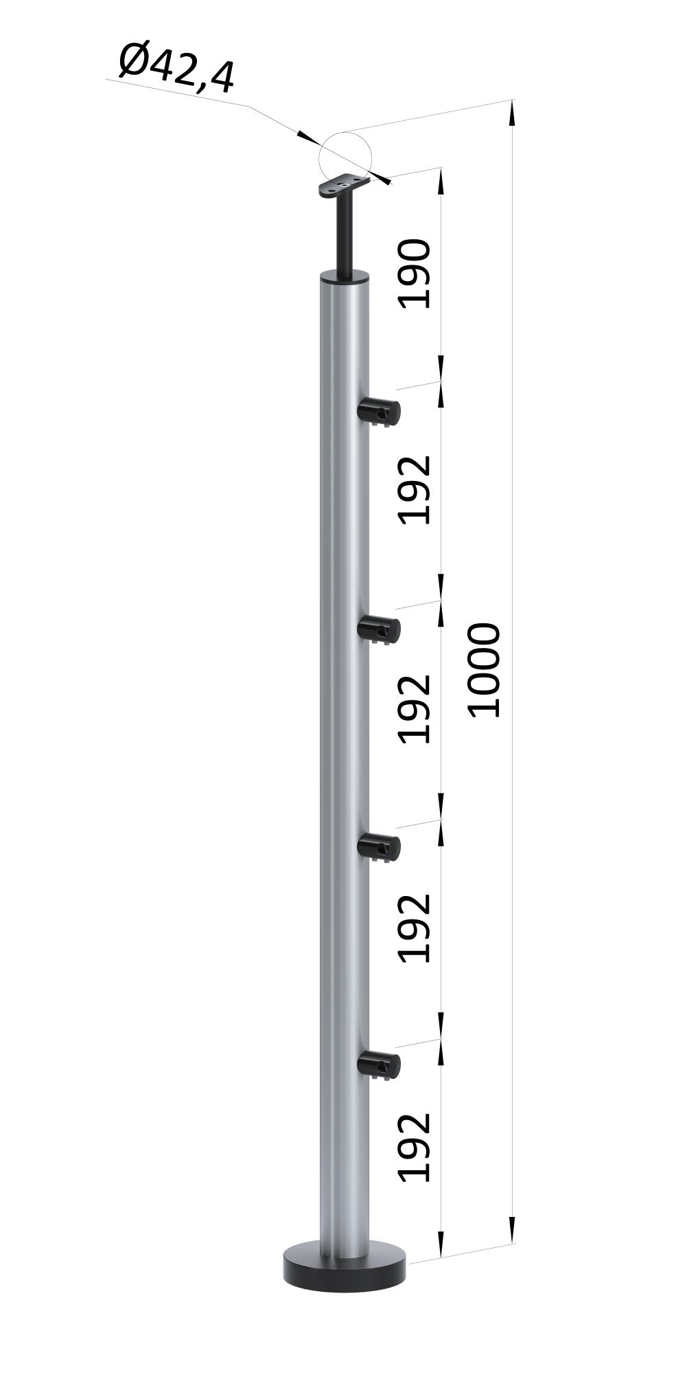- Nerezový sloup, vrchní kotvení, 4řadový průchozí