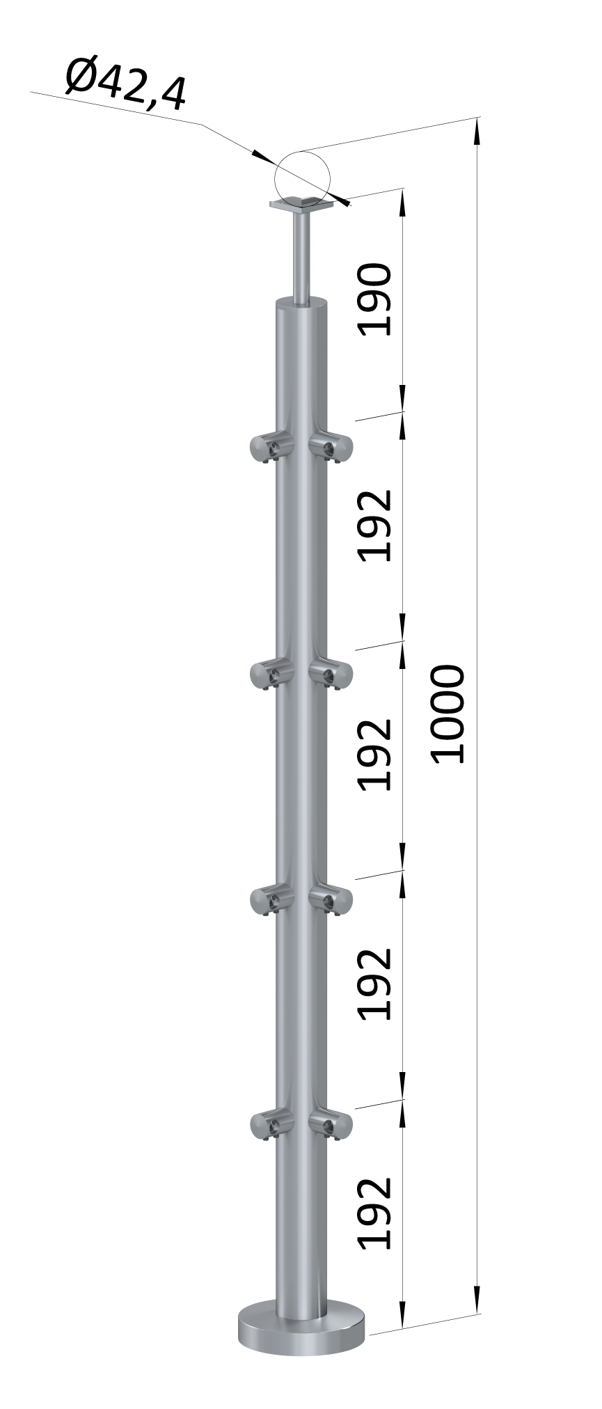 - Nerezový sloup, vrchní kotvení, 4řadový, rohový: 90°