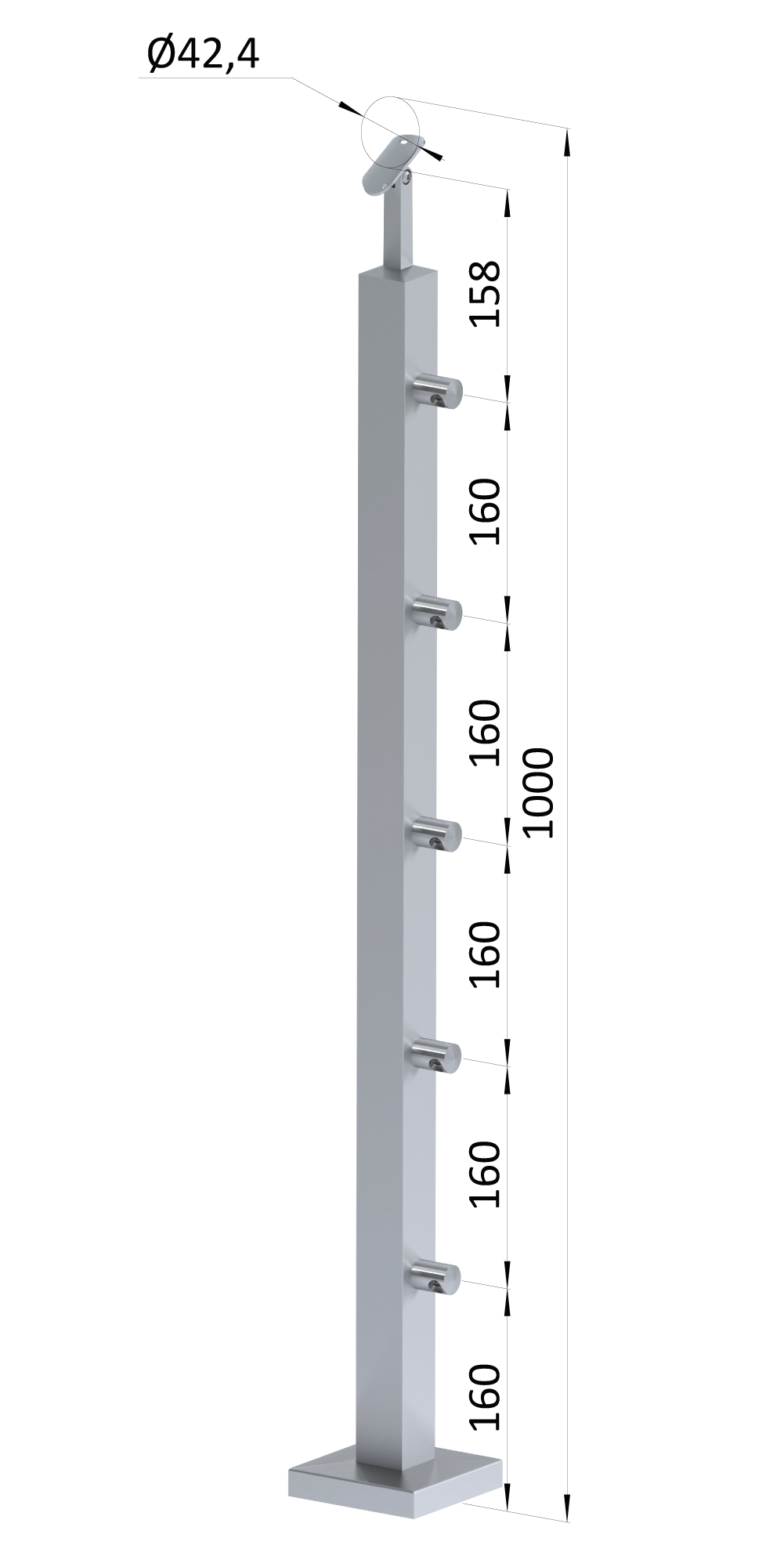 - Nerezový sloup, vrchní kotvení, 5řadový průchozí Rozmer B