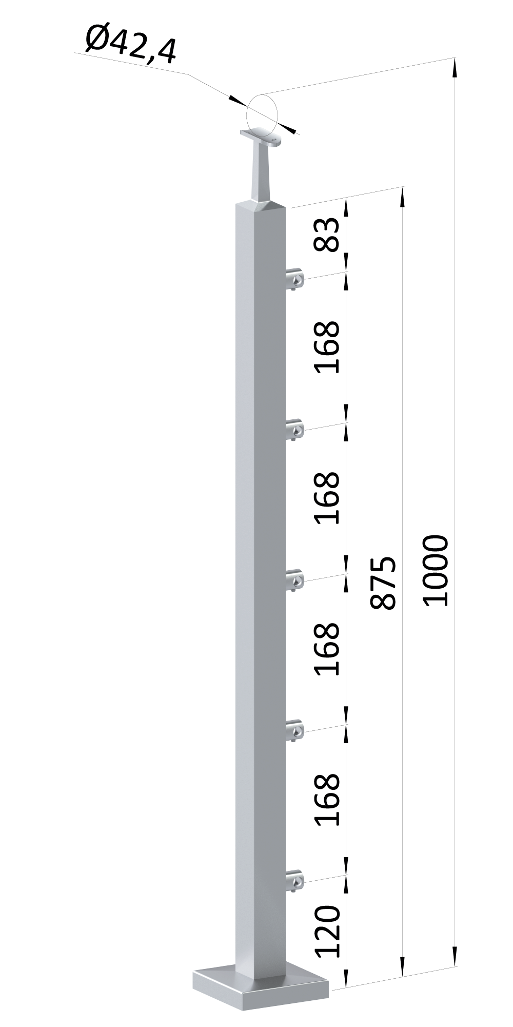 - Nerezový sloup, vrchní kotvení, 5řadový průchozí