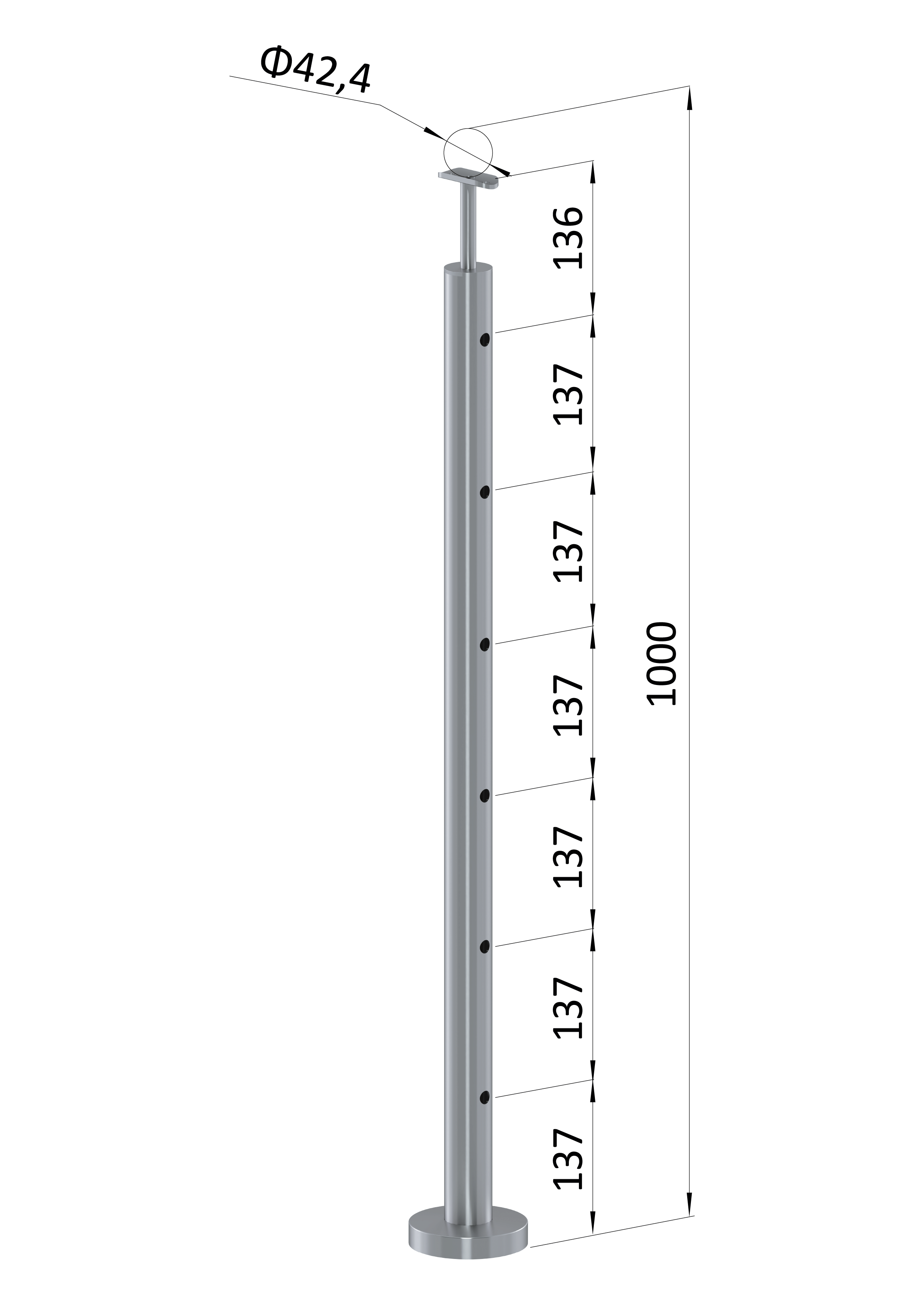 - Nerezový sloup, vrchní kotvení, 6děrový koncový Priemer výplne 12