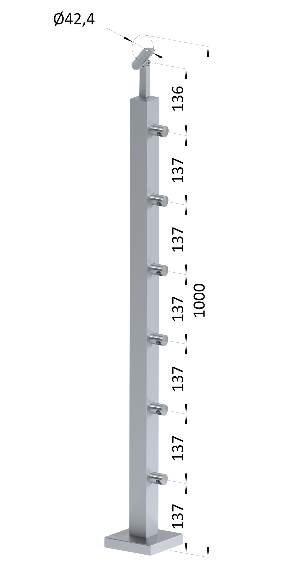 - Nerezový sloup, vrchní kotvení, 6řadový průchozí Rozmer B