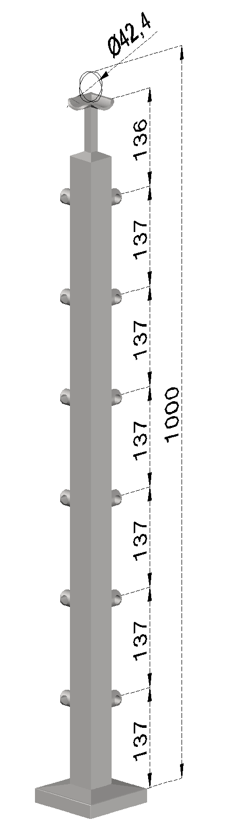 - Nerezový sloup, vrchní kotvení, 6řadový rohový