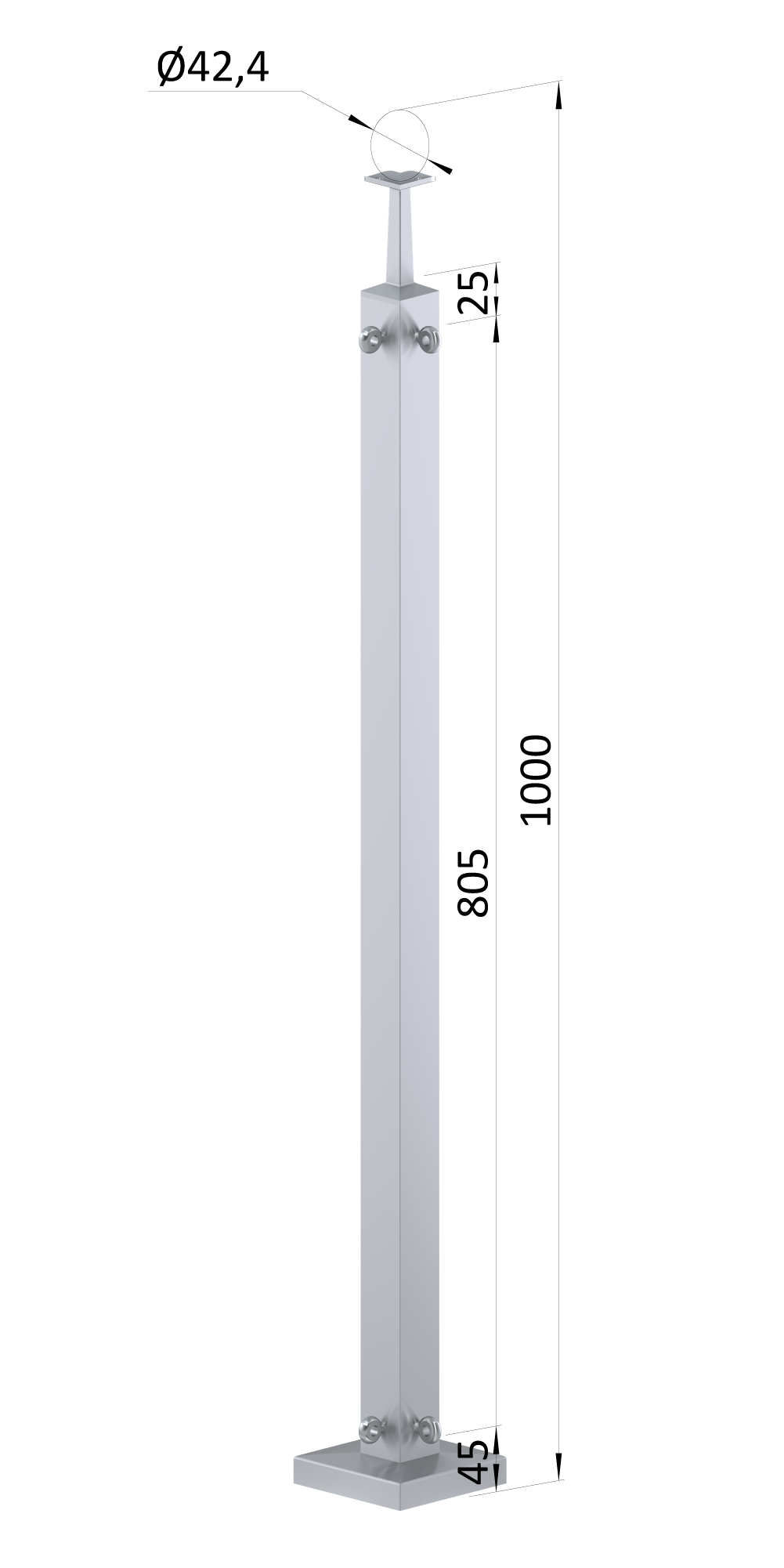 - Nerezový sloup, vrchní kotvení, pro síť, rohový 90°