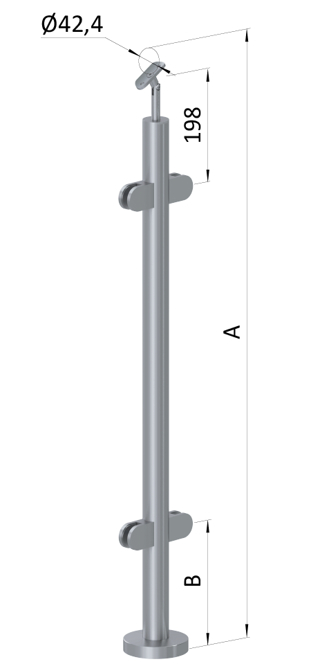 - Nerezový sloup, vrchní kotvení, výplň: sklo, průchozí Rozmer B