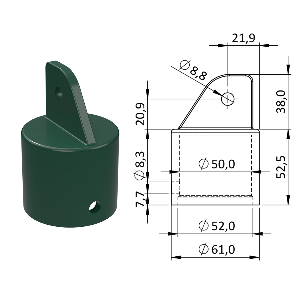 - Plastová krytka, ø 61 x 90,5 mm, tvrzený plast PA