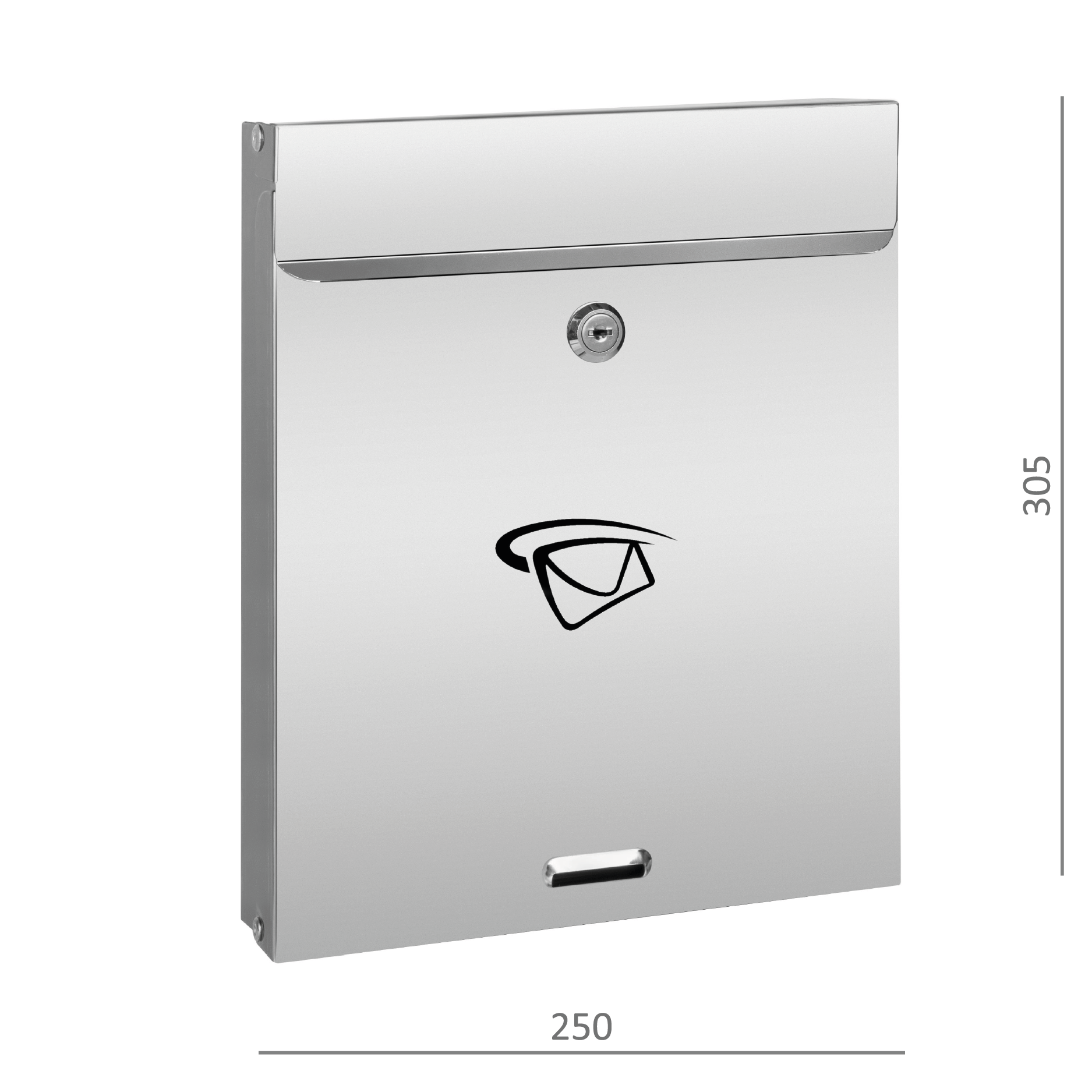 - Poštovní schránka (305x250x60 mm), vhoz (20x240 mm) max. formát listu: A4, leštěná nerez /AISI304
