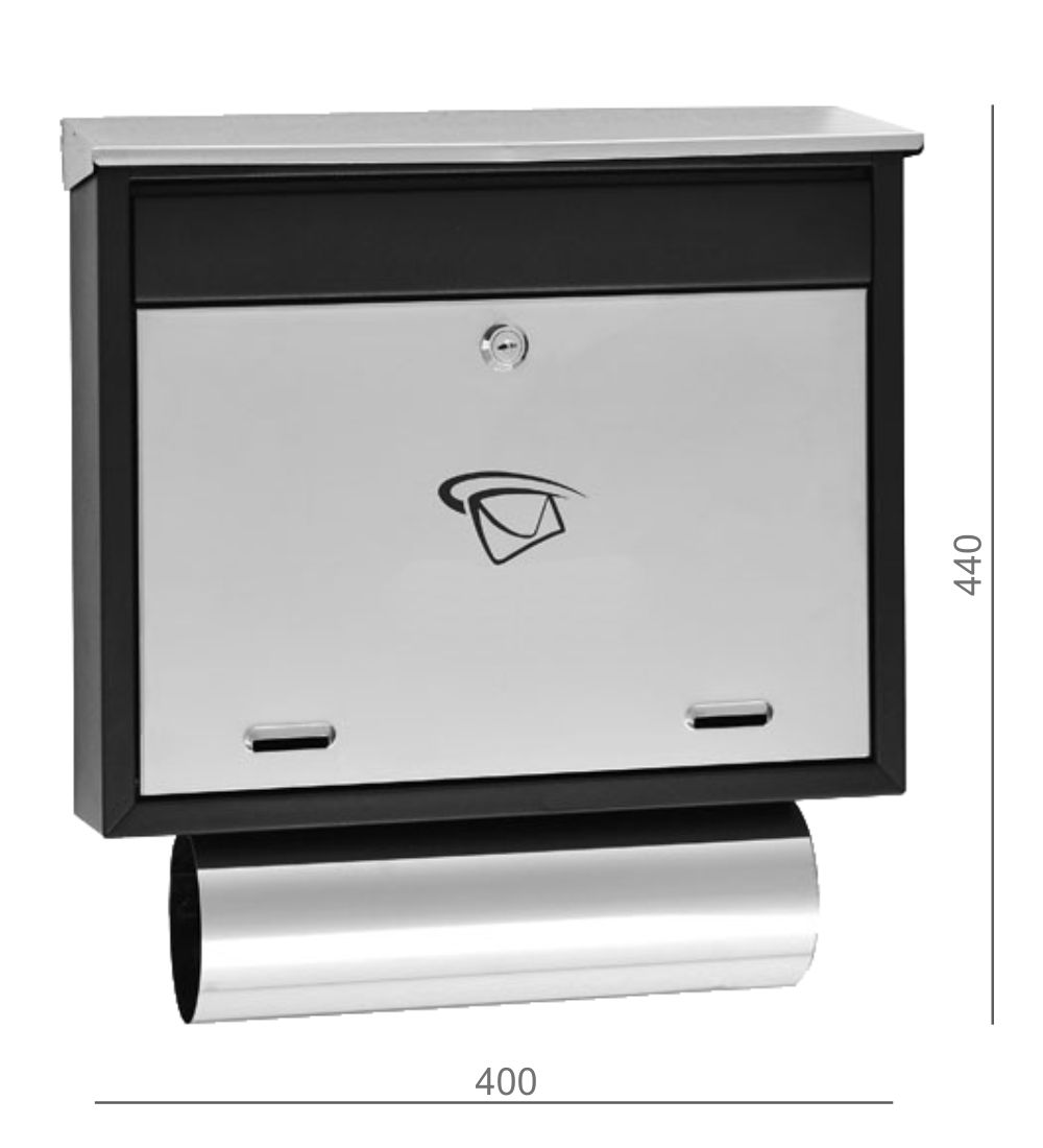 - Poštovní schránka (400x440x100 mm) nerez / černá, max. formát listu: C4, leštěná nerez AISI430