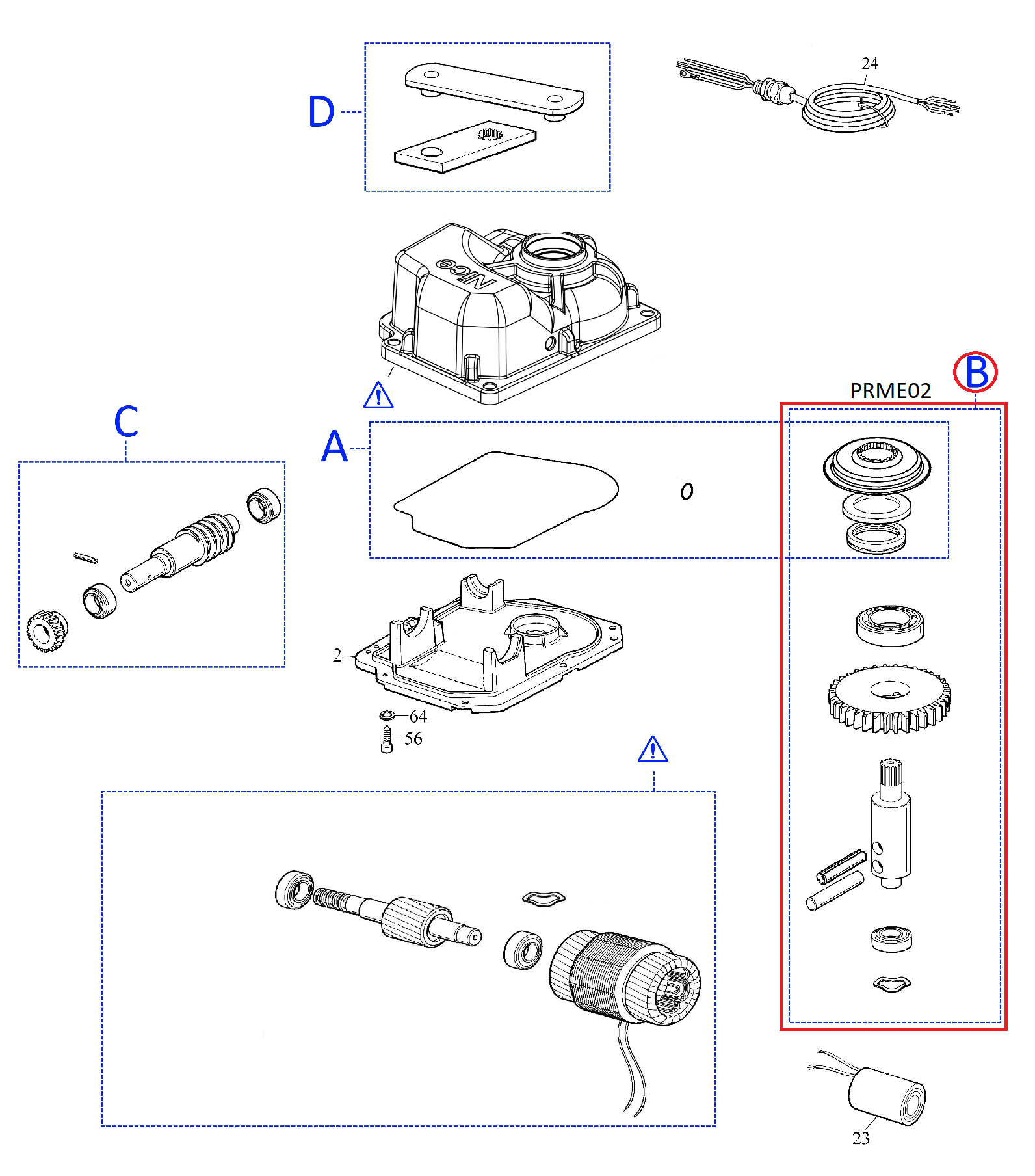 - PRME02 kit pro METRO3000R01 / ME3010 kit výstupní hřídele převodovky s ložisky a guferem pro METRO3000 / 3024/3010, obsa