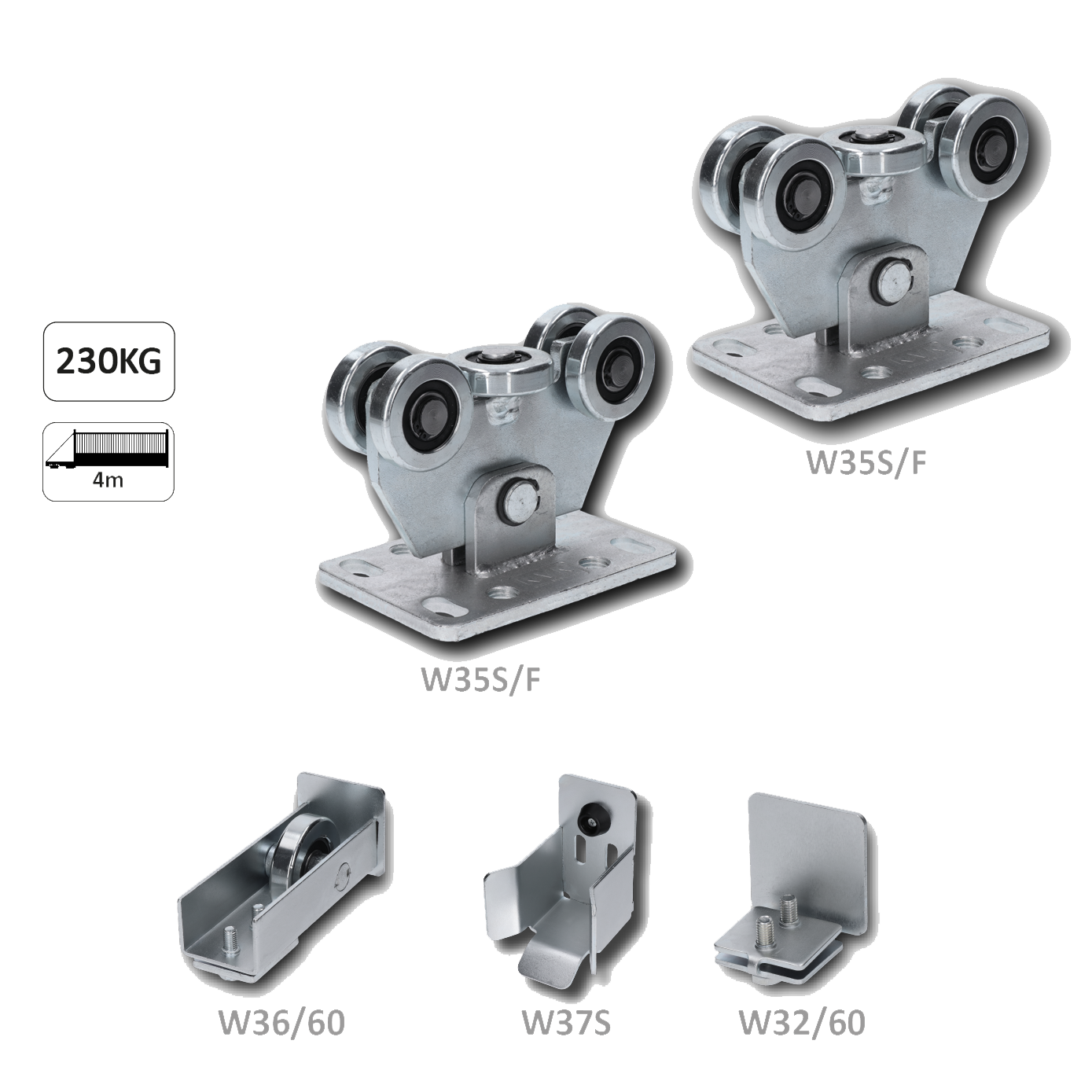 Set pro samonosný systém 60 x 60 x 4 mm, 2x vozíky, 1x doraz, 1x náběhové kolečko