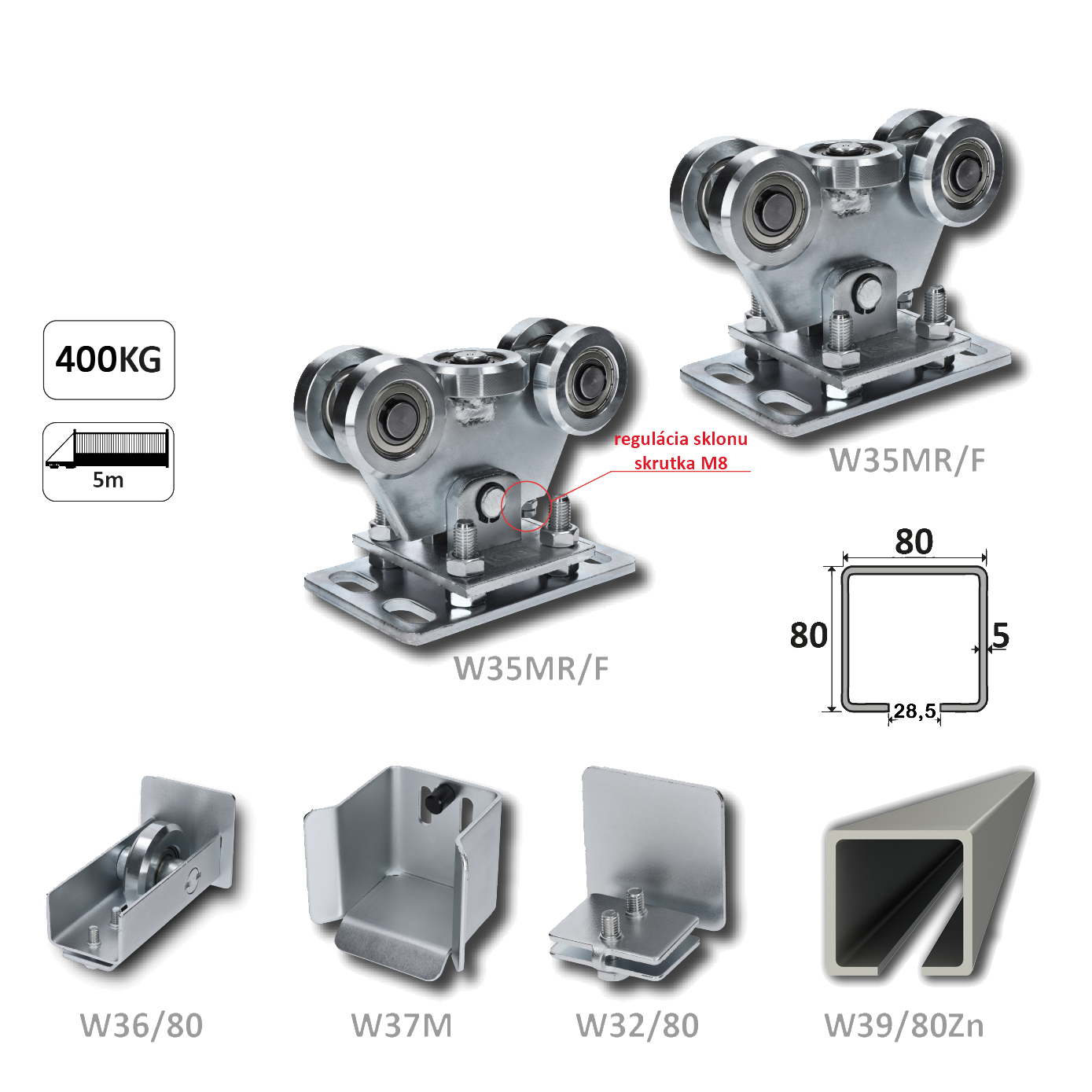 • Samonos do 400 kg, profil 80 x 80 x 6000 mm, Zn