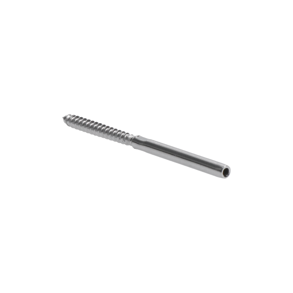 Úchyt (lepiaci) pre nerezové lanko ø 3mm so závitom do dreva, ( ø 6mm / L: 100mm), brúsená nerez K320 /AISI316, použiť lepidlo MD-GEL454/20